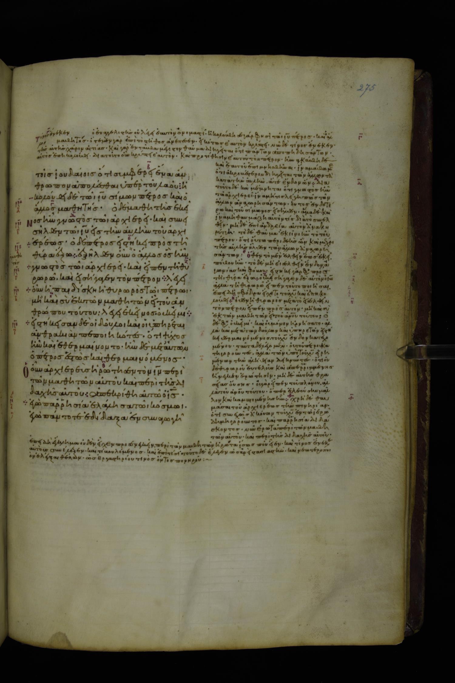 Tenth century minuscule of the Gospels with commentary; 285 leaves, 1 column, 4-34 lines per column. Images were taken at the National Library of Greece in Athens.
