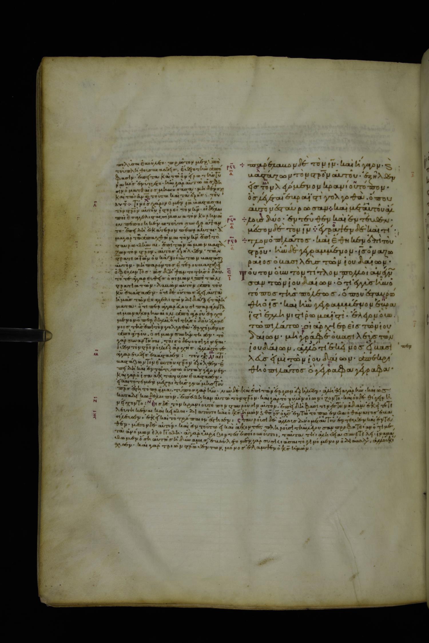 Tenth century minuscule of the Gospels with commentary; 285 leaves, 1 column, 4-34 lines per column. Images were taken at the National Library of Greece in Athens.
