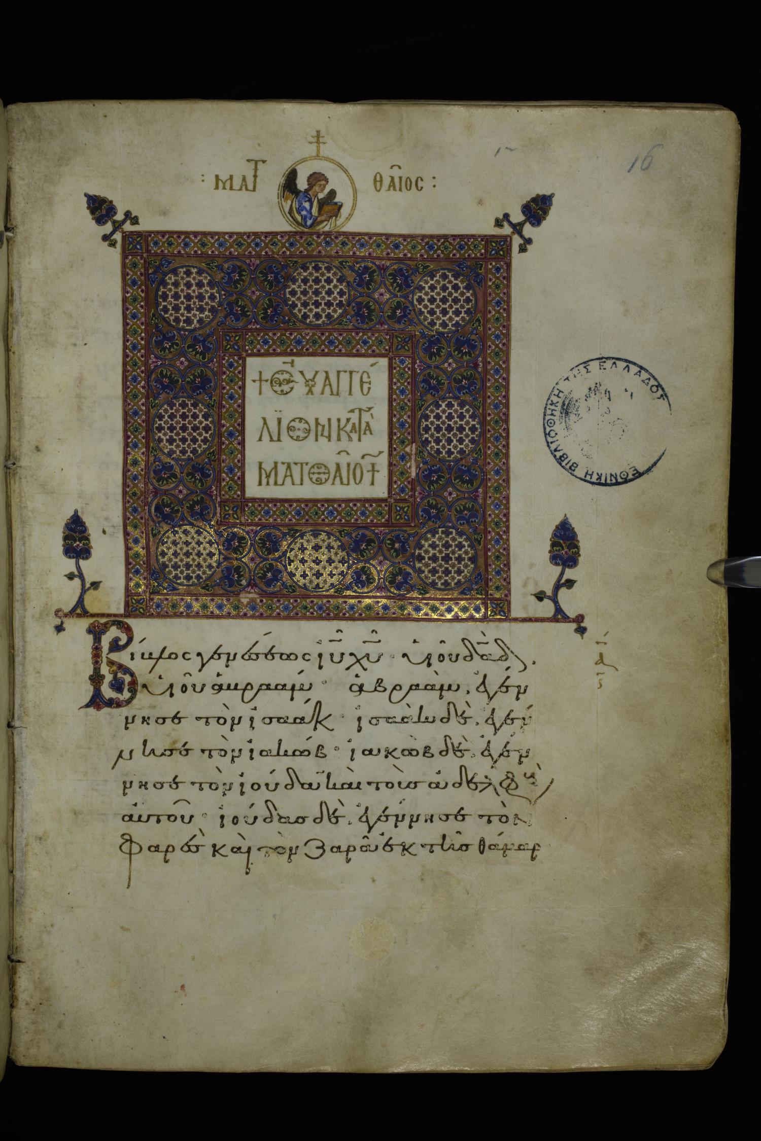 Eleventh century minuscule of Gospels on parchment; 370 leaves, 1 column, 20 lines per column. Images were taken at the National Library of Greece in Athens.