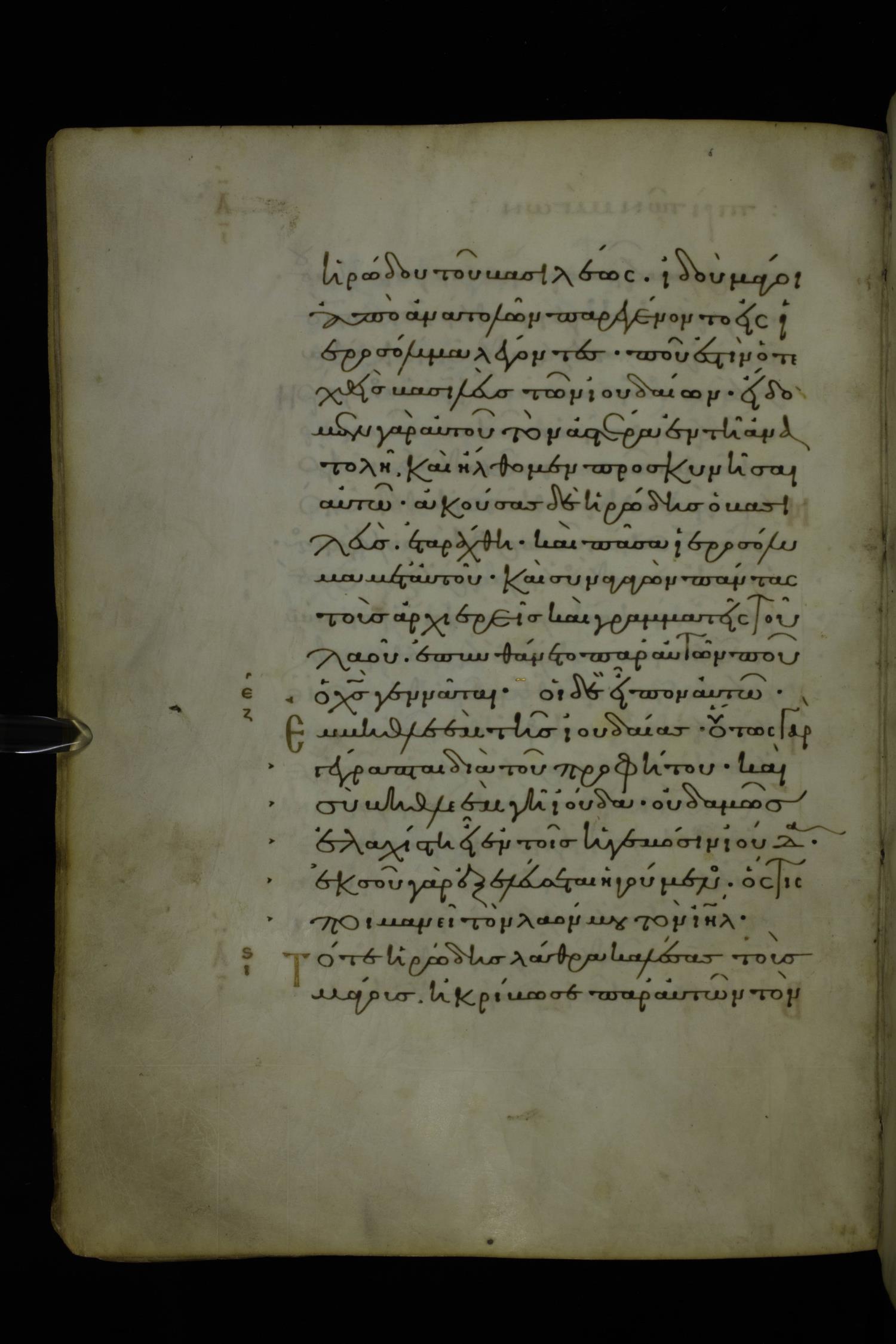 Eleventh century minuscule of Gospels on parchment; 370 leaves, 1 column, 20 lines per column. Images were taken at the National Library of Greece in Athens.