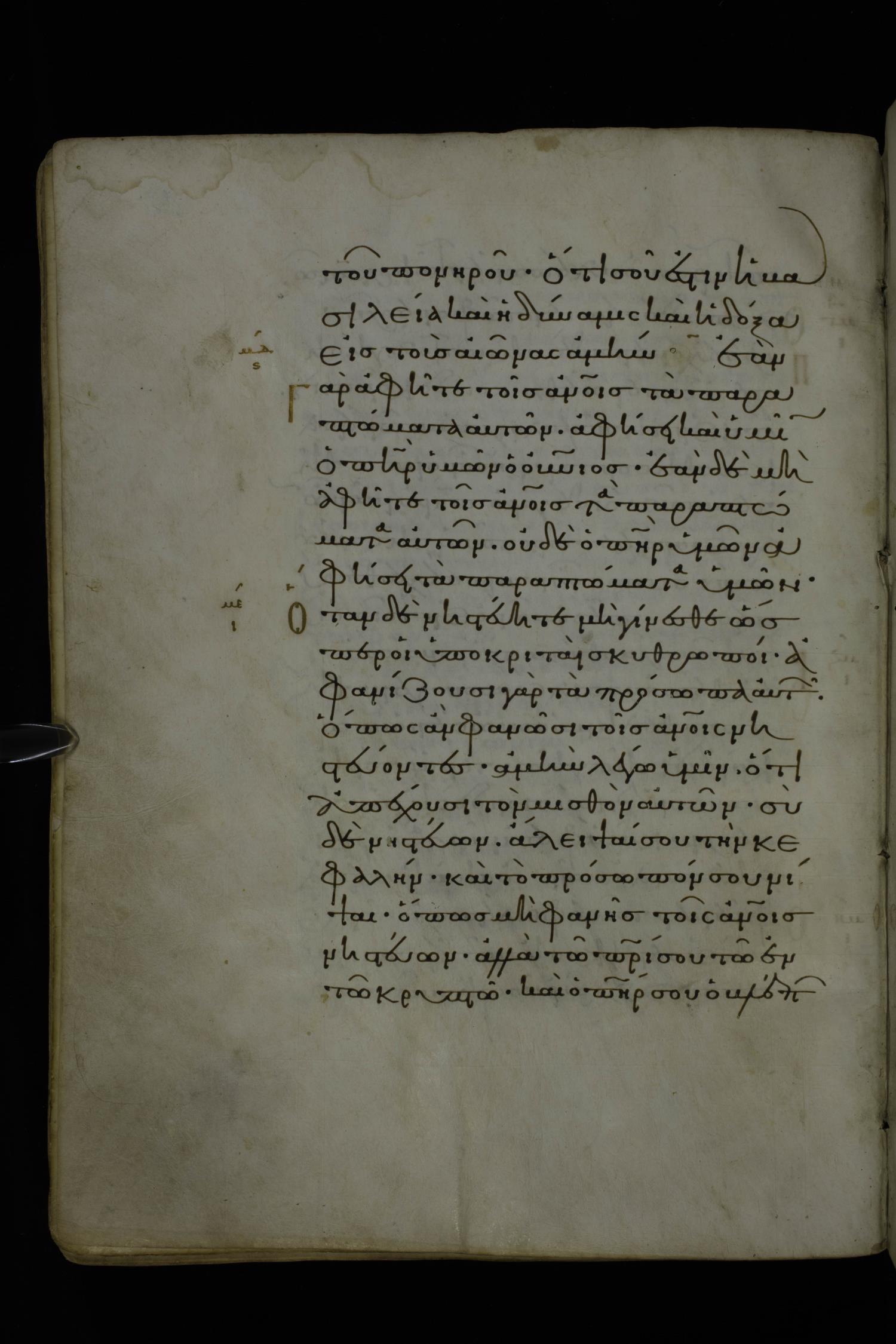Eleventh century minuscule of Gospels on parchment; 370 leaves, 1 column, 20 lines per column. Images were taken at the National Library of Greece in Athens.