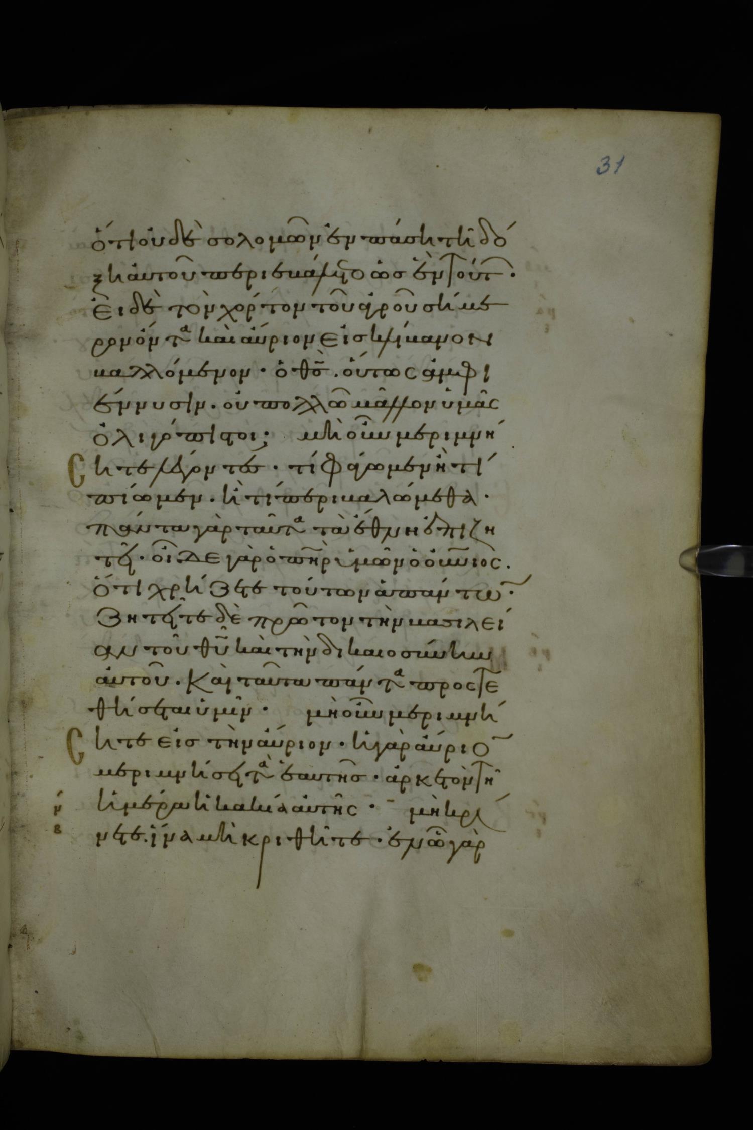 Eleventh century minuscule of Gospels on parchment; 370 leaves, 1 column, 20 lines per column. Images were taken at the National Library of Greece in Athens.