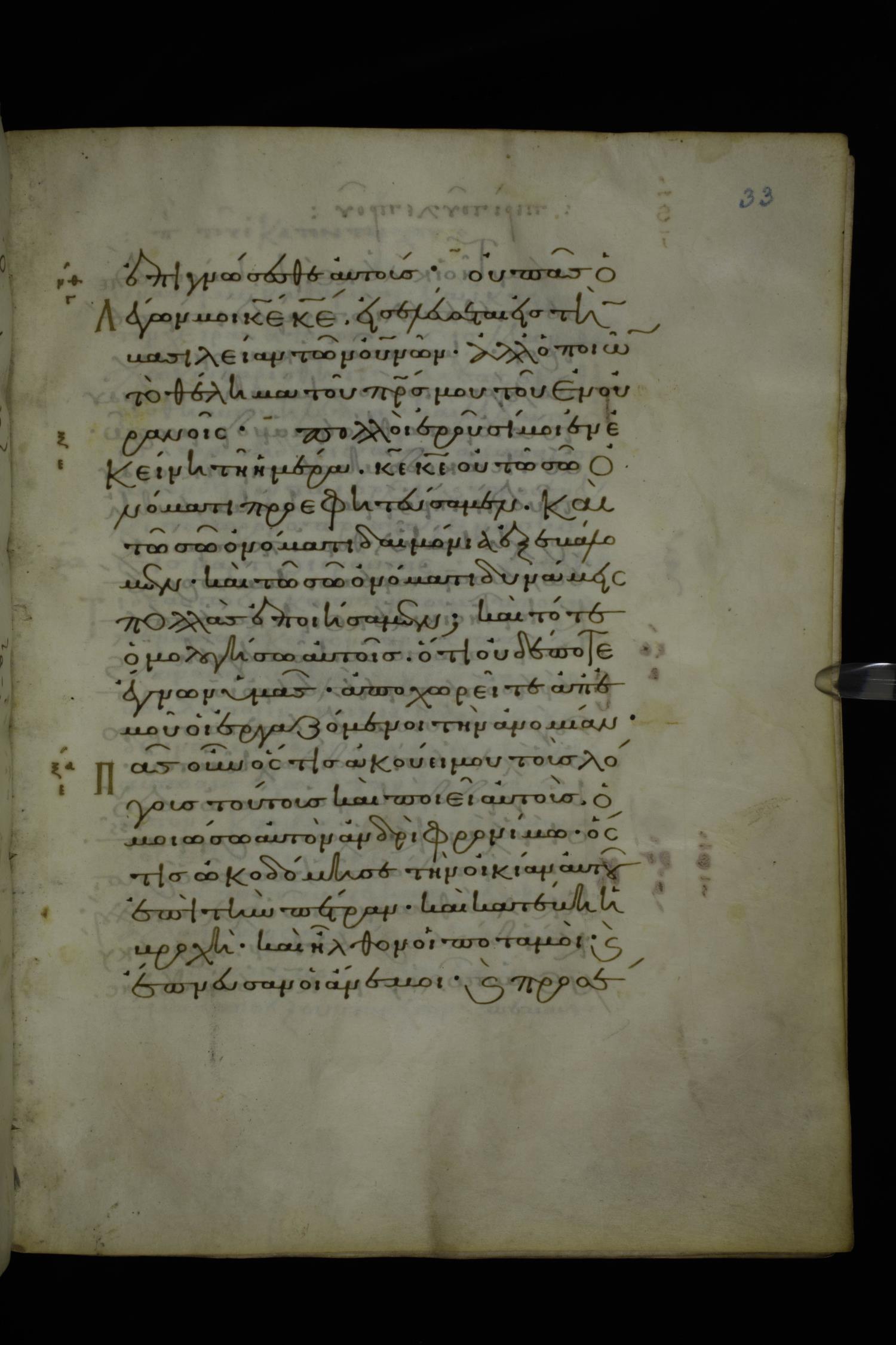 Eleventh century minuscule of Gospels on parchment; 370 leaves, 1 column, 20 lines per column. Images were taken at the National Library of Greece in Athens.