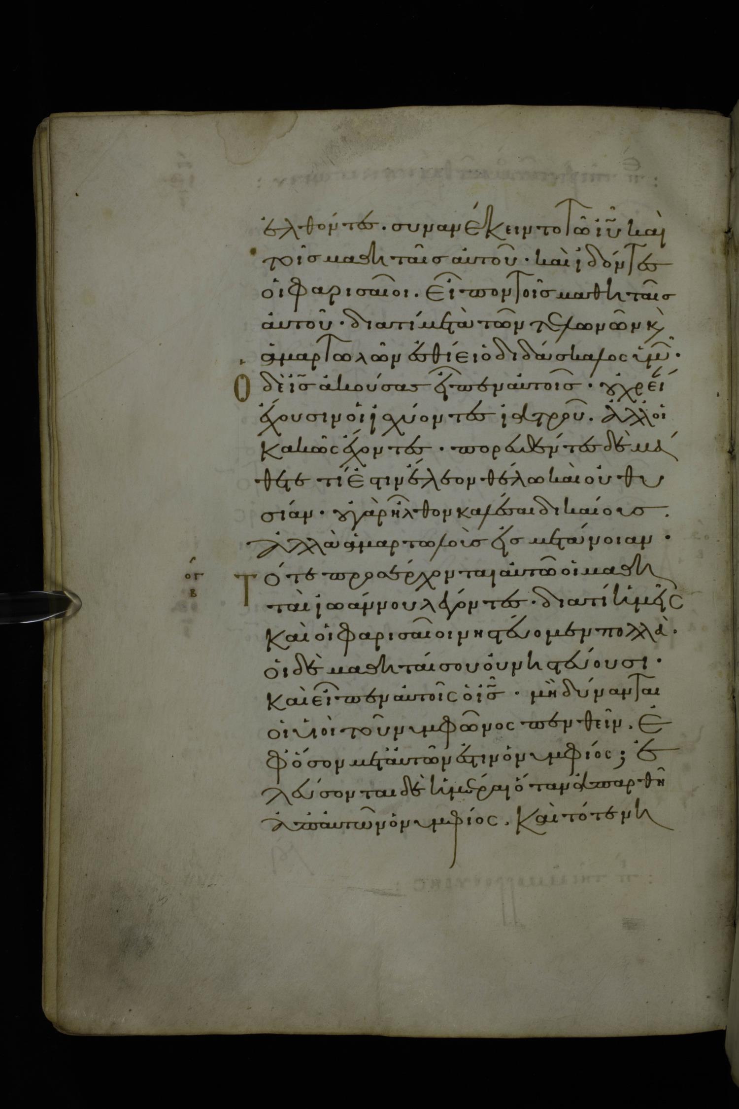 Eleventh century minuscule of Gospels on parchment; 370 leaves, 1 column, 20 lines per column. Images were taken at the National Library of Greece in Athens.