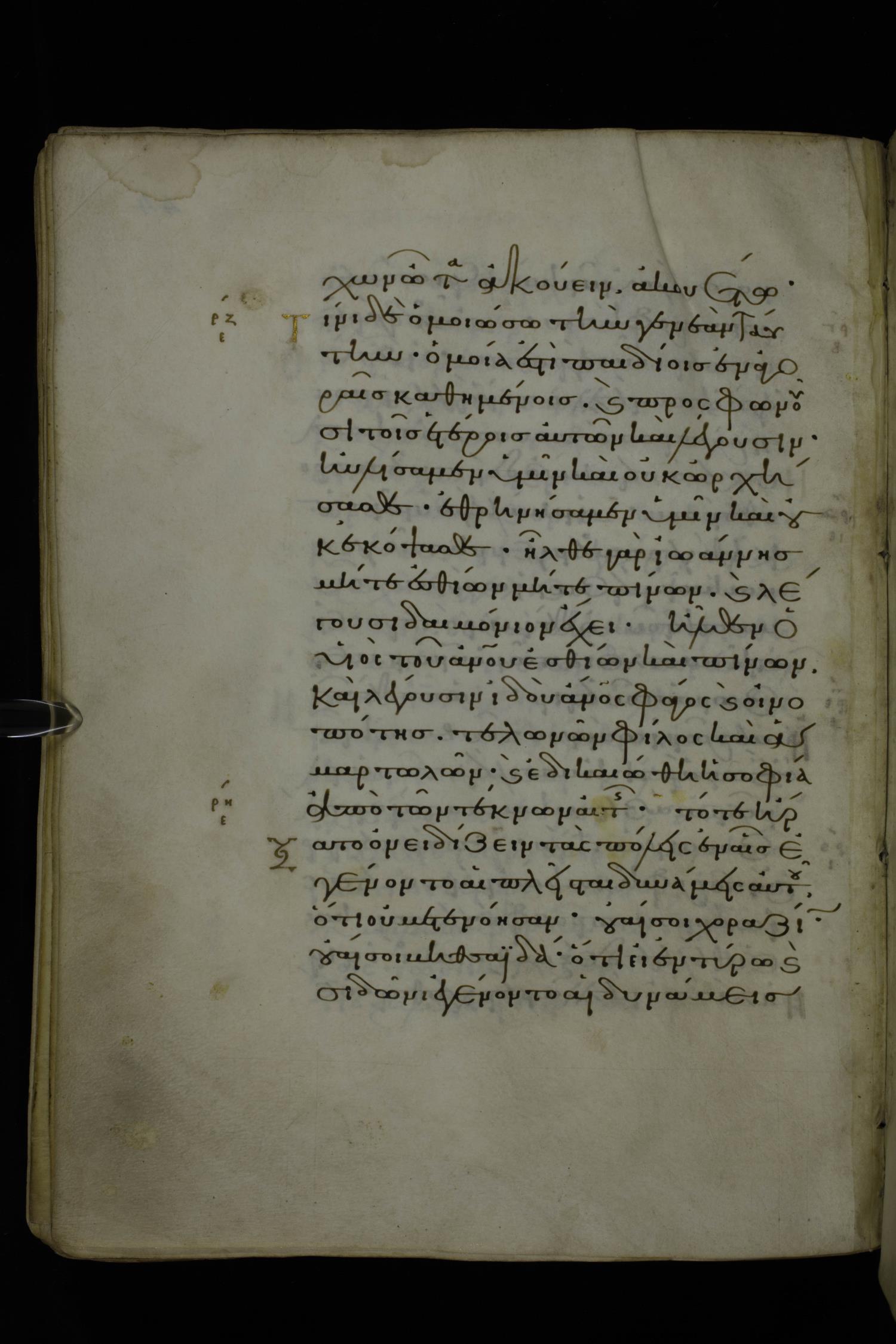 Eleventh century minuscule of Gospels on parchment; 370 leaves, 1 column, 20 lines per column. Images were taken at the National Library of Greece in Athens.