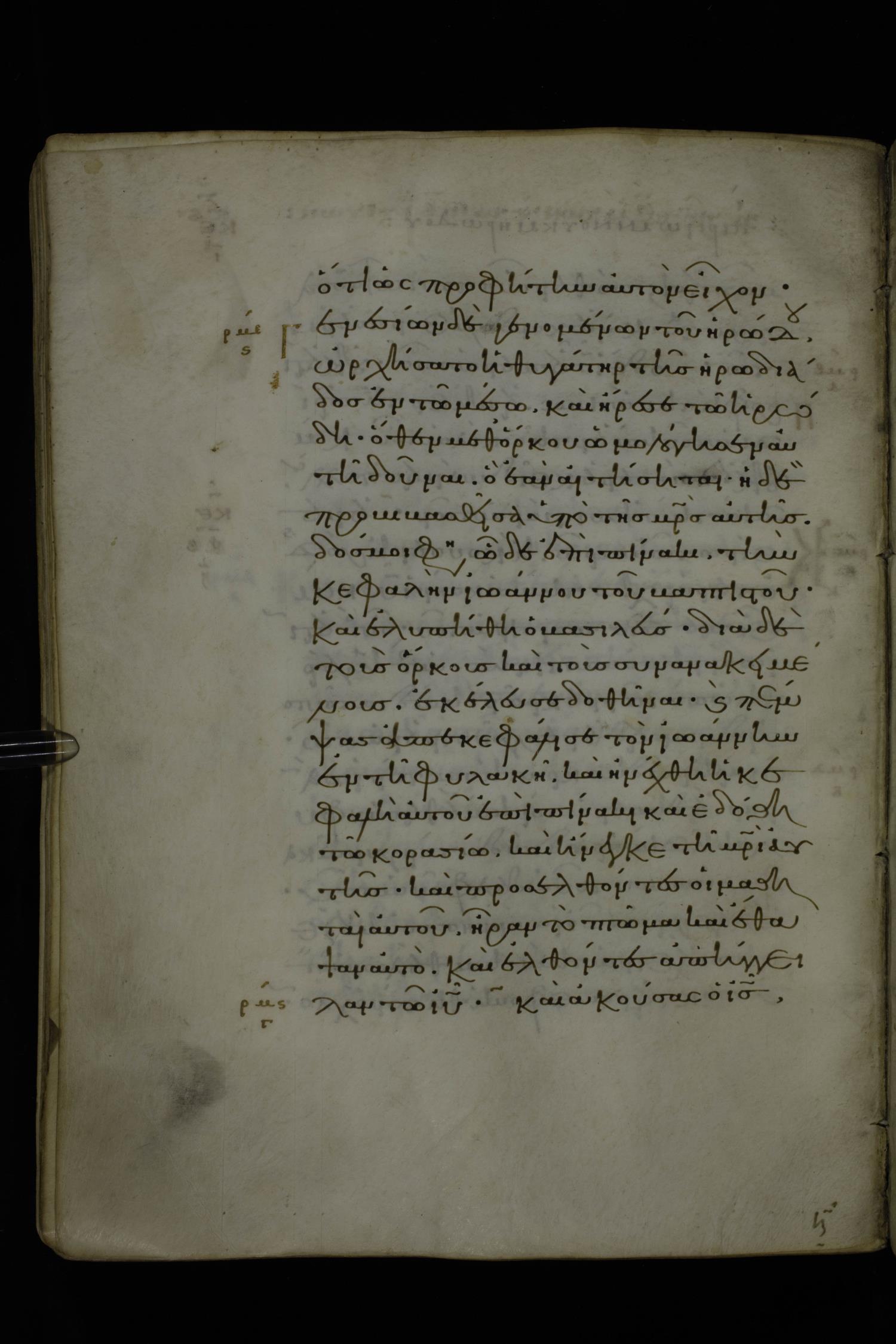 Eleventh century minuscule of Gospels on parchment; 370 leaves, 1 column, 20 lines per column. Images were taken at the National Library of Greece in Athens.
