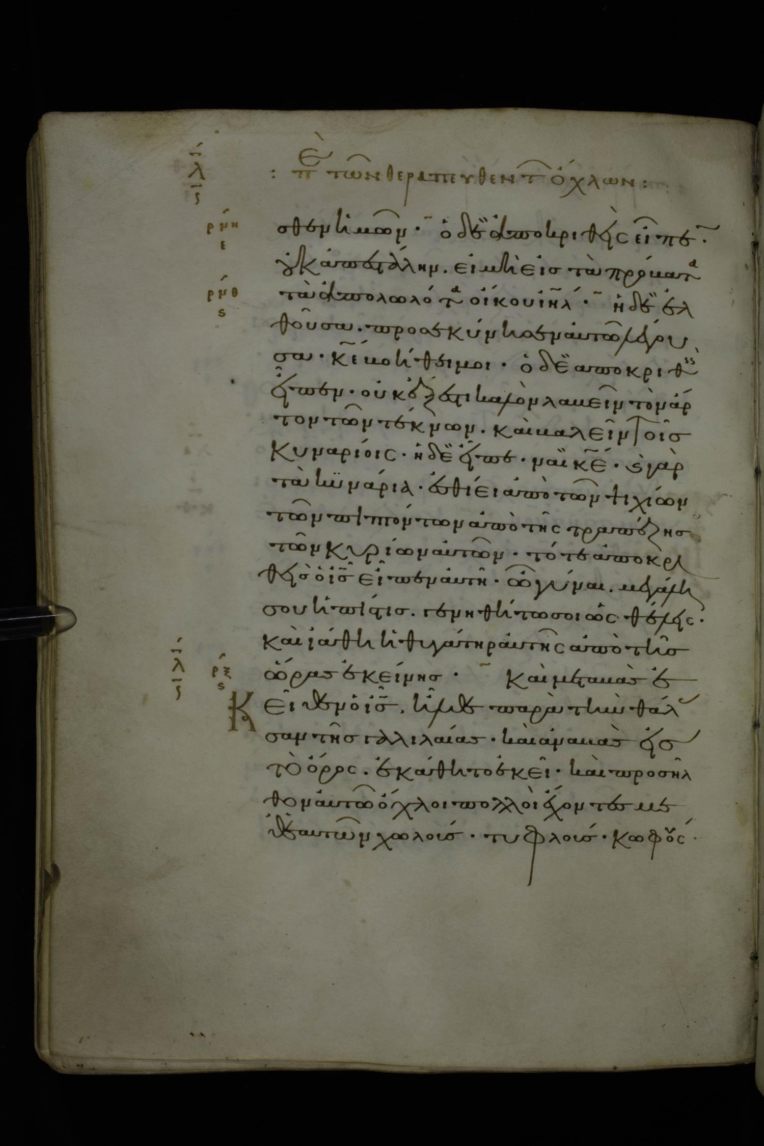 Eleventh century minuscule of Gospels on parchment; 370 leaves, 1 column, 20 lines per column. Images were taken at the National Library of Greece in Athens.