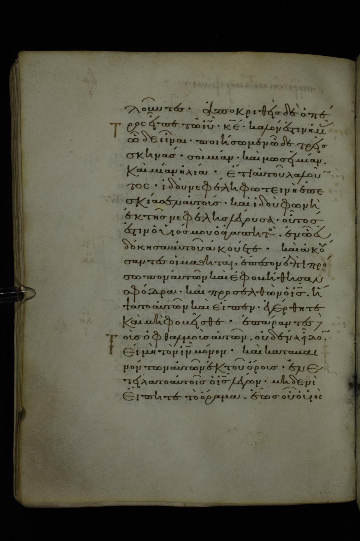 Eleventh century minuscule of Gospels on parchment; 370 leaves, 1 column, 20 lines per column. Images were taken at the National Library of Greece in Athens.