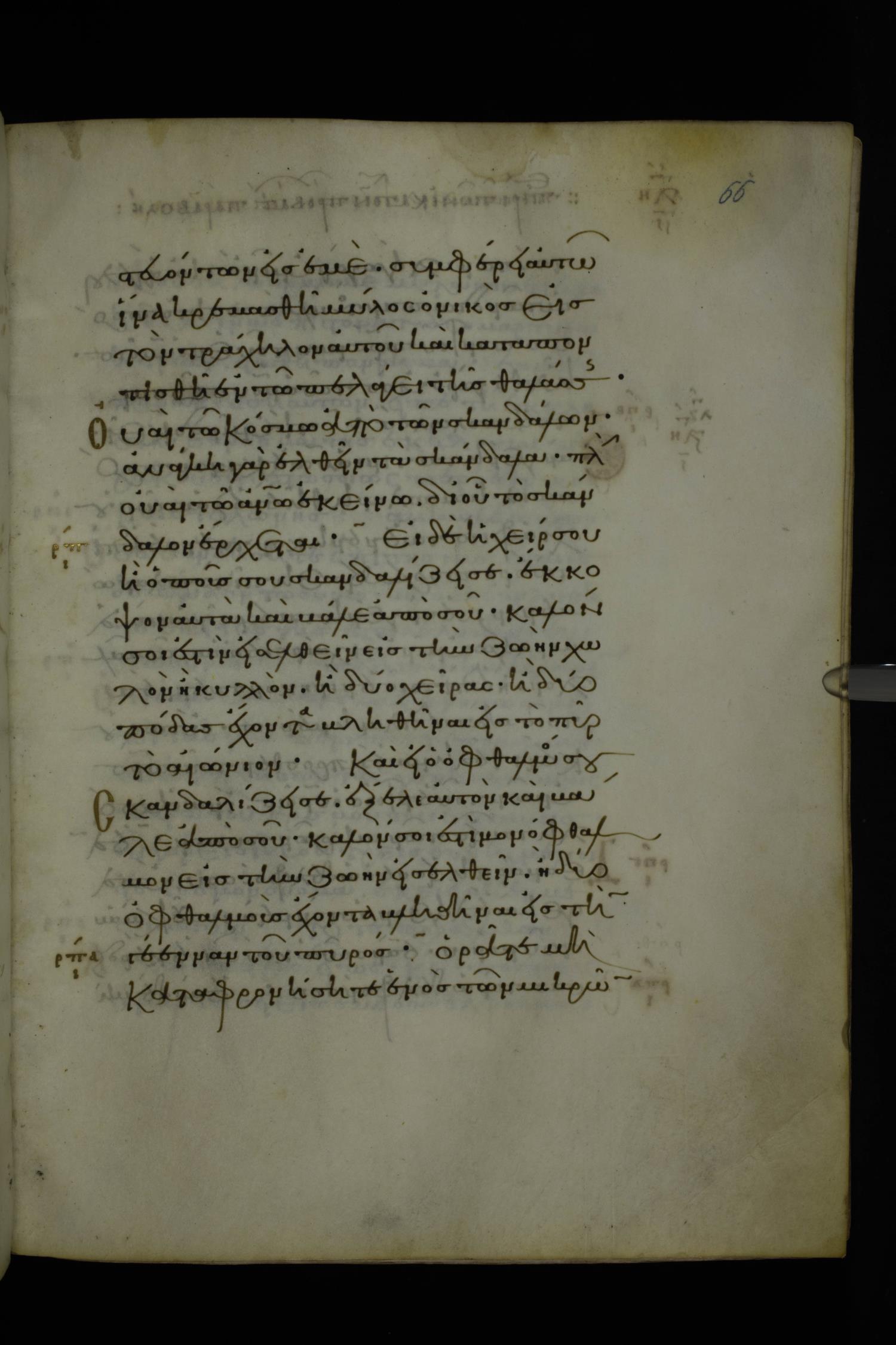 Eleventh century minuscule of Gospels on parchment; 370 leaves, 1 column, 20 lines per column. Images were taken at the National Library of Greece in Athens.