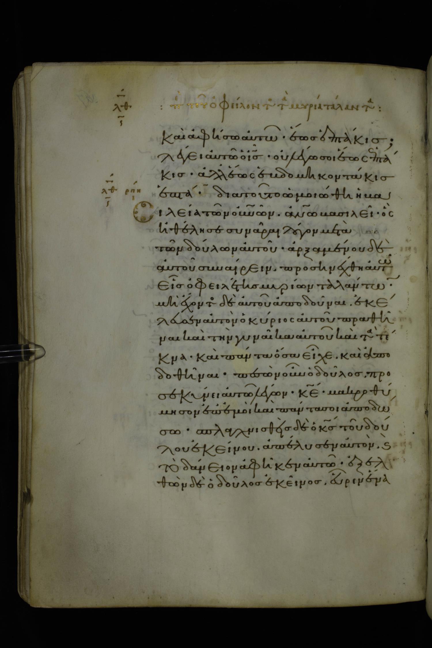 Eleventh century minuscule of Gospels on parchment; 370 leaves, 1 column, 20 lines per column. Images were taken at the National Library of Greece in Athens.