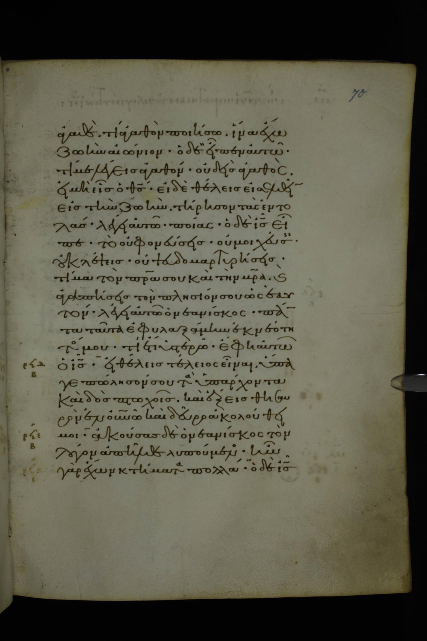 Eleventh century minuscule of Gospels on parchment; 370 leaves, 1 column, 20 lines per column. Images were taken at the National Library of Greece in Athens.