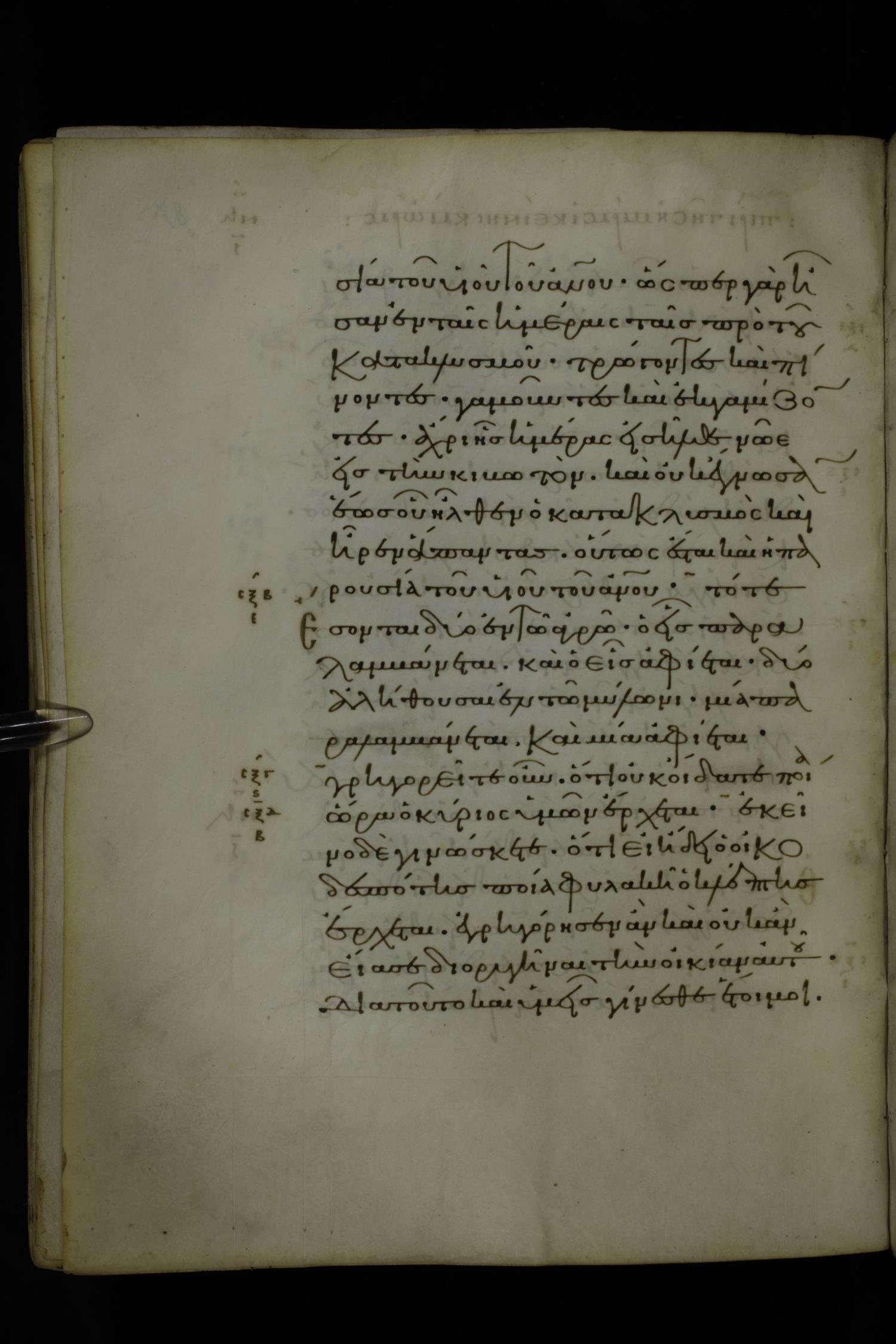 Eleventh century minuscule of Gospels on parchment; 370 leaves, 1 column, 20 lines per column. Images were taken at the National Library of Greece in Athens.