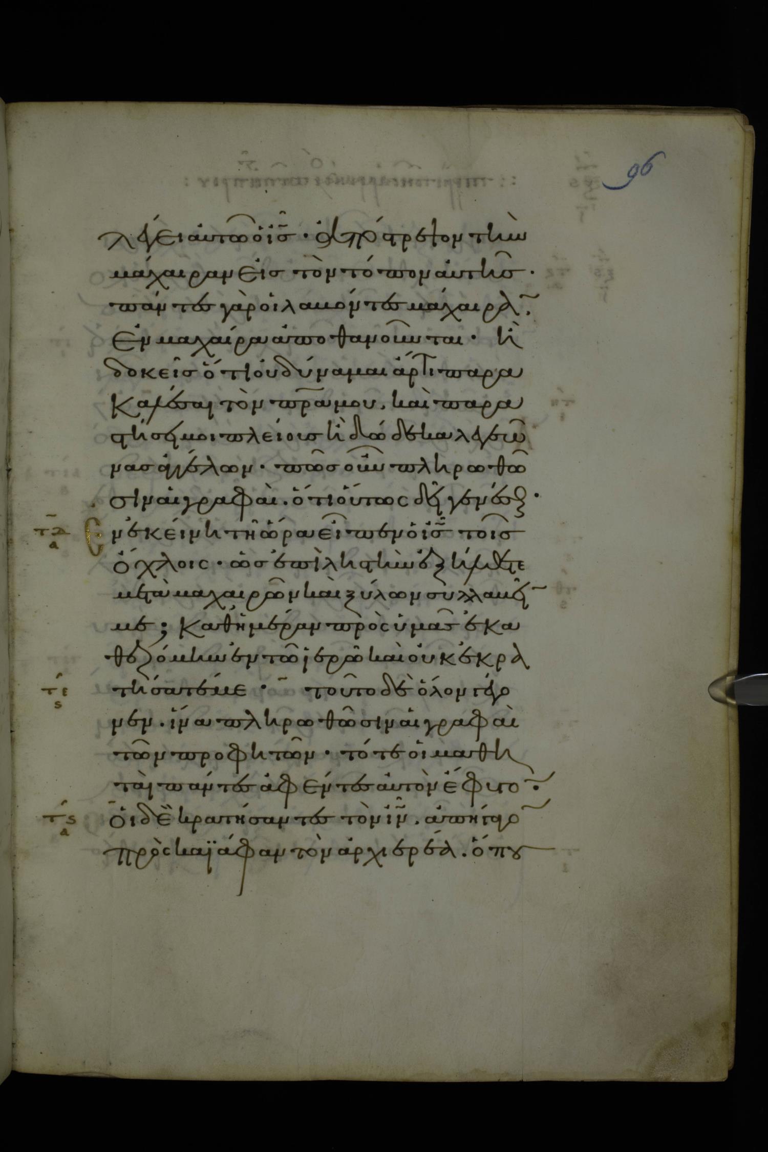 Eleventh century minuscule of Gospels on parchment; 370 leaves, 1 column, 20 lines per column. Images were taken at the National Library of Greece in Athens.