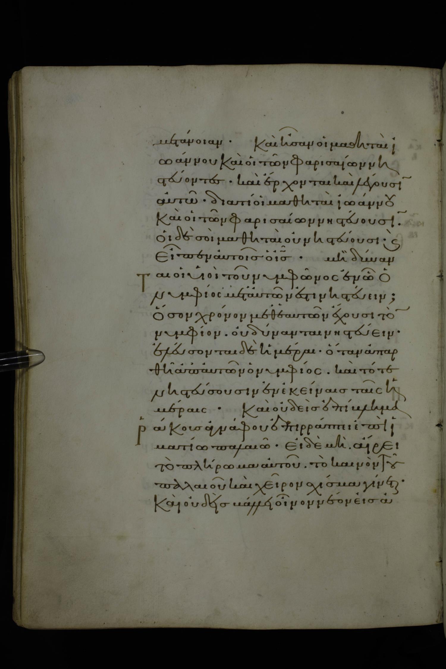 Eleventh century minuscule of Gospels on parchment; 370 leaves, 1 column, 20 lines per column. Images were taken at the National Library of Greece in Athens.
