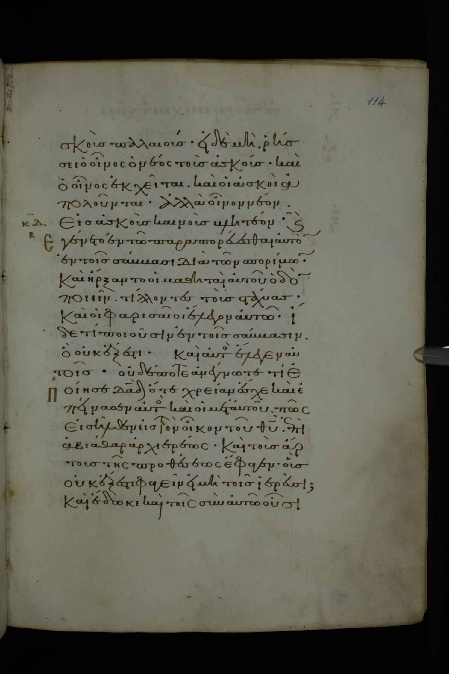Eleventh century minuscule of Gospels on parchment; 370 leaves, 1 column, 20 lines per column. Images were taken at the National Library of Greece in Athens.