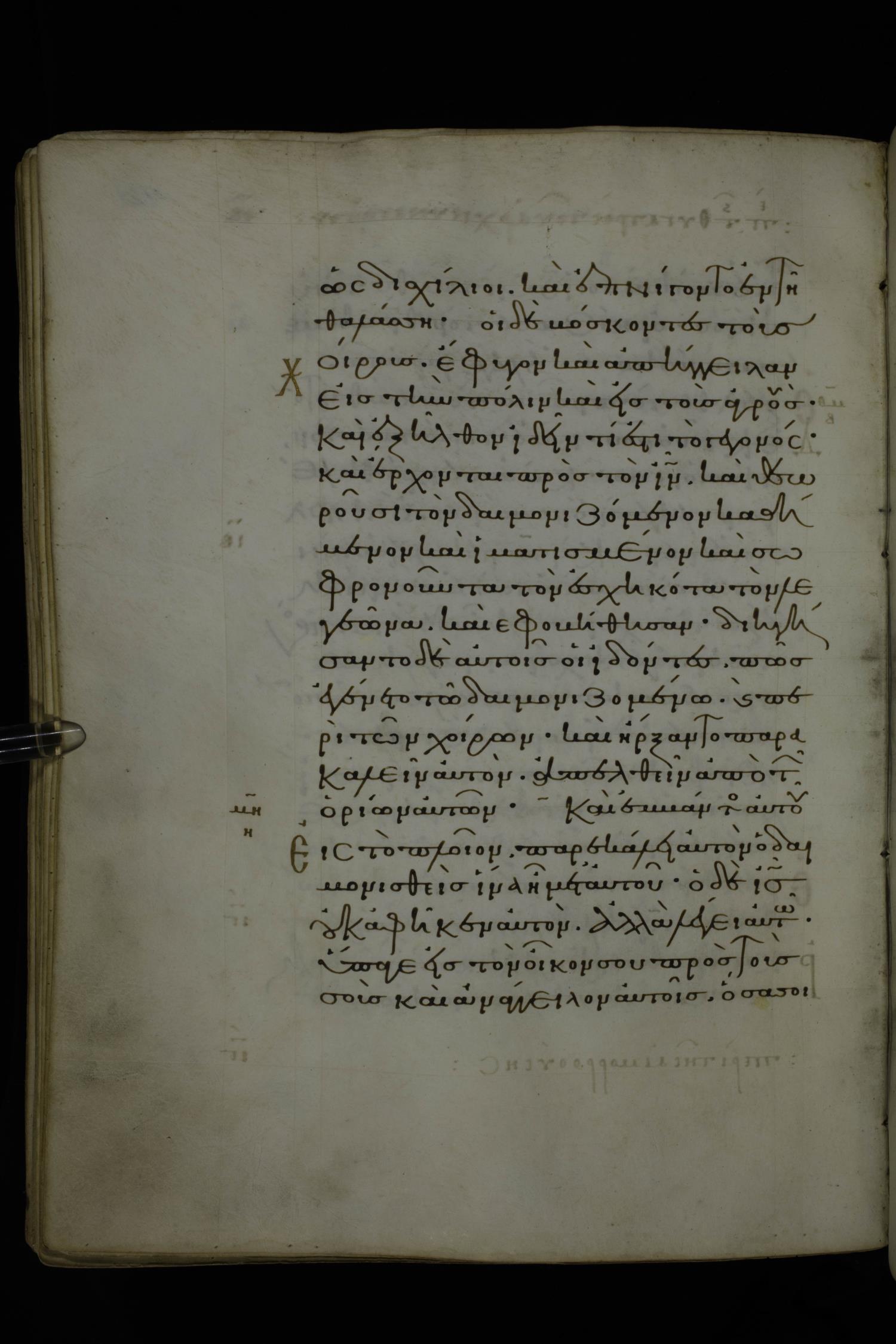 Eleventh century minuscule of Gospels on parchment; 370 leaves, 1 column, 20 lines per column. Images were taken at the National Library of Greece in Athens.