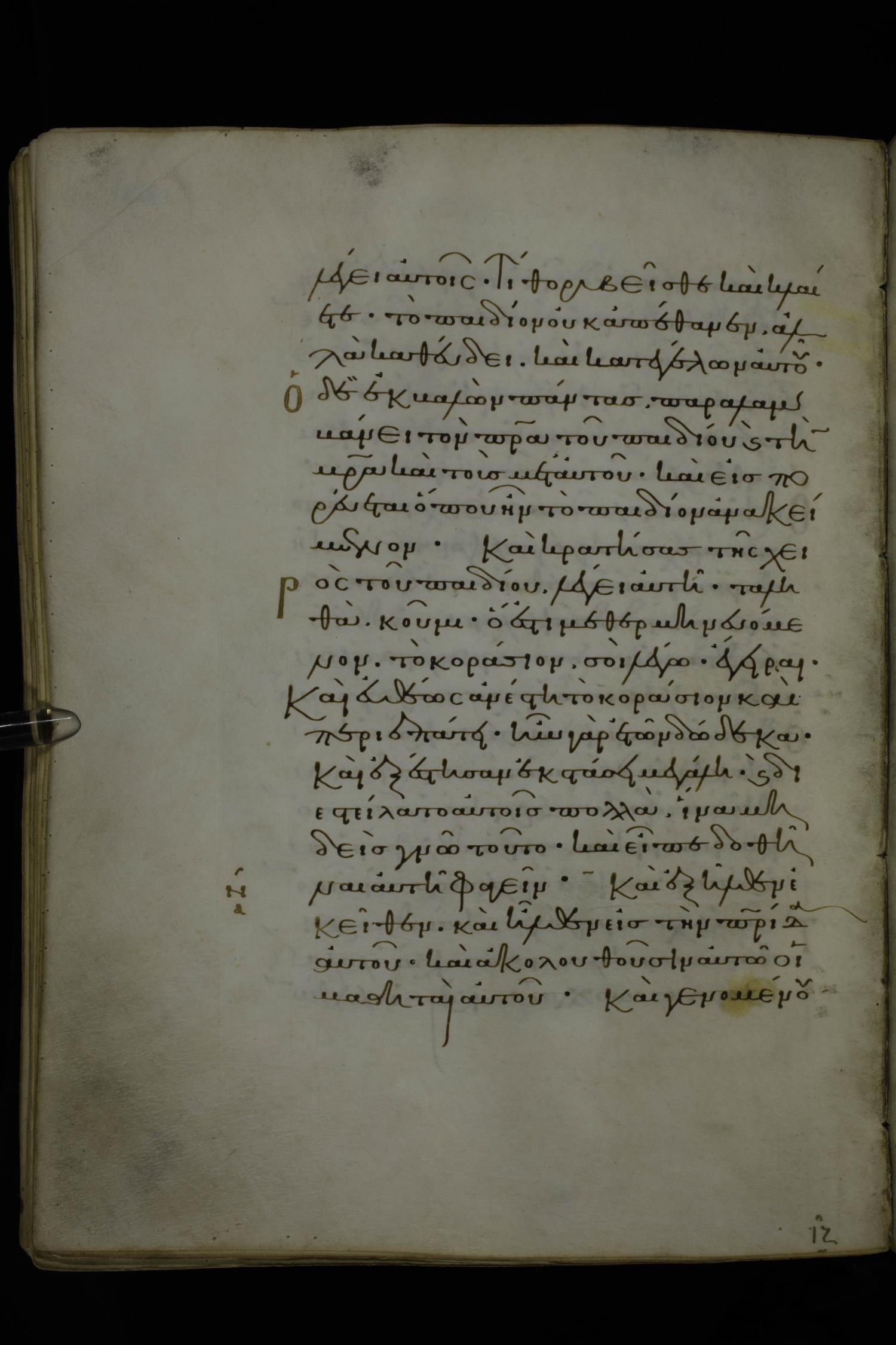 Eleventh century minuscule of Gospels on parchment; 370 leaves, 1 column, 20 lines per column. Images were taken at the National Library of Greece in Athens.