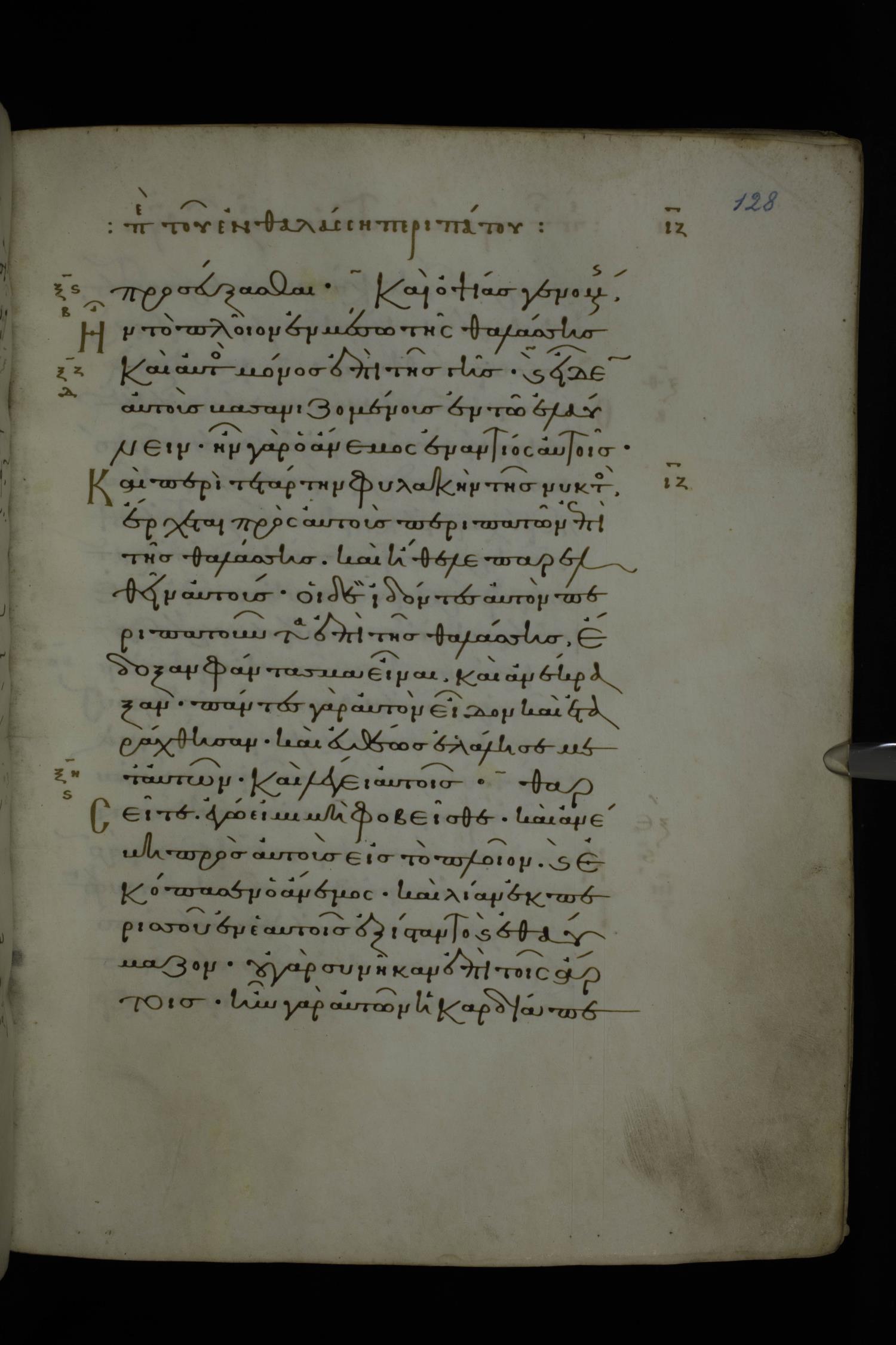 Eleventh century minuscule of Gospels on parchment; 370 leaves, 1 column, 20 lines per column. Images were taken at the National Library of Greece in Athens.
