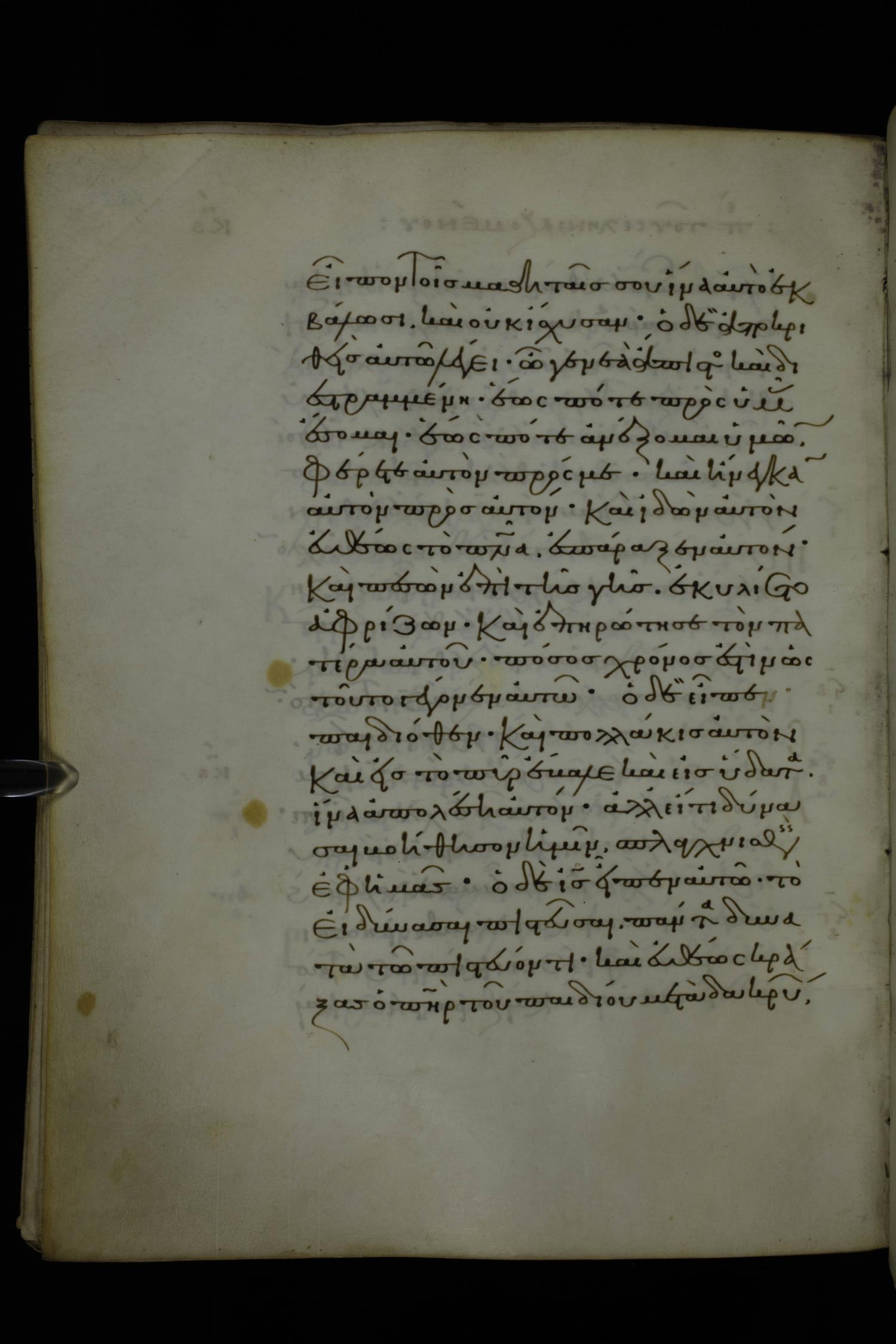 Eleventh century minuscule of Gospels on parchment; 370 leaves, 1 column, 20 lines per column. Images were taken at the National Library of Greece in Athens.