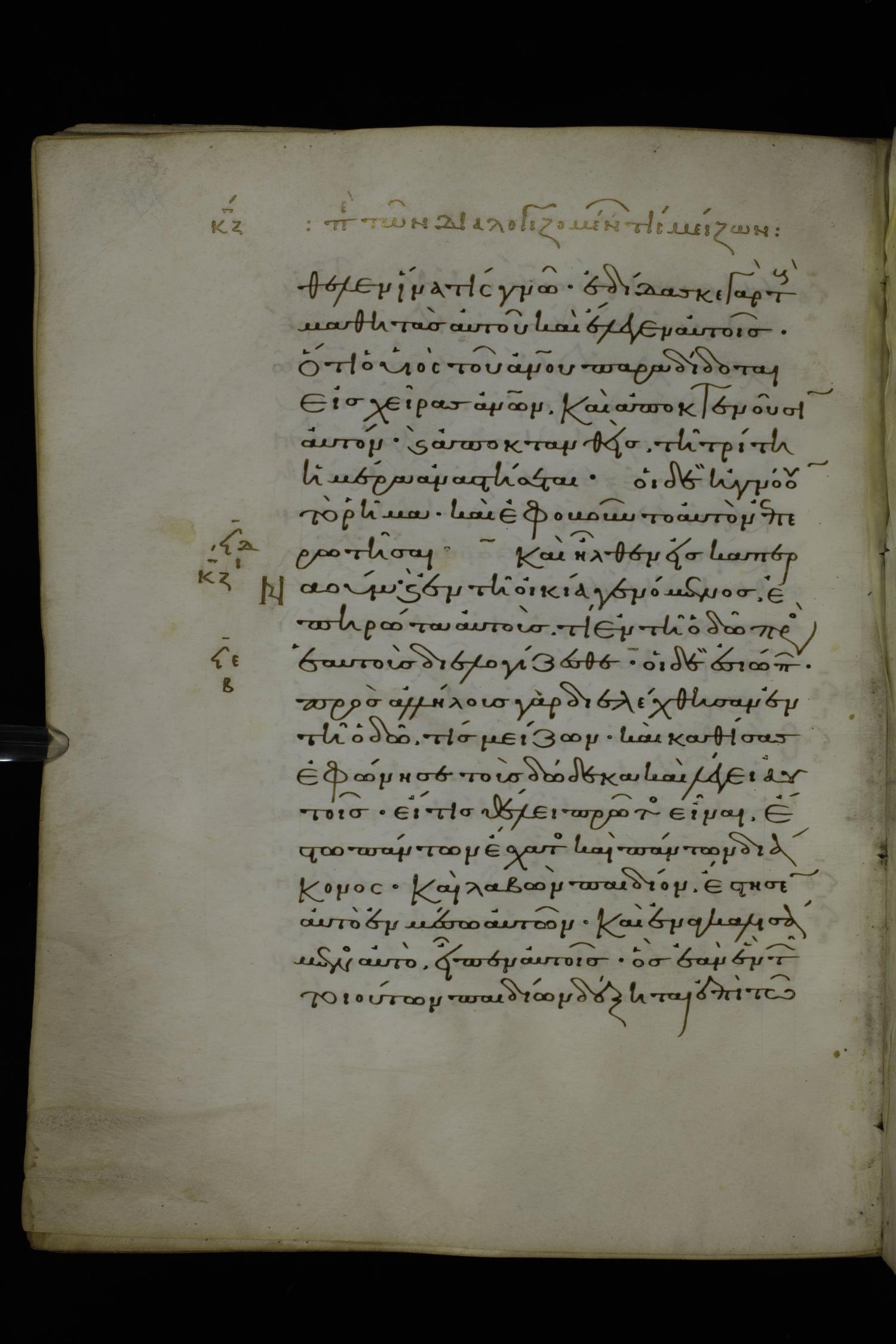 Eleventh century minuscule of Gospels on parchment; 370 leaves, 1 column, 20 lines per column. Images were taken at the National Library of Greece in Athens.