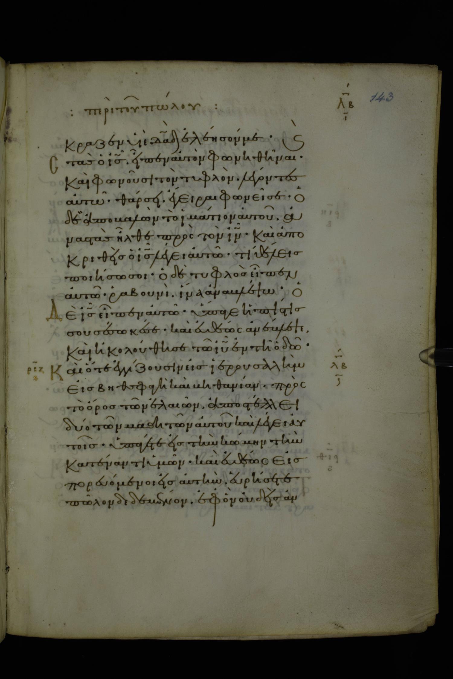 Eleventh century minuscule of Gospels on parchment; 370 leaves, 1 column, 20 lines per column. Images were taken at the National Library of Greece in Athens.