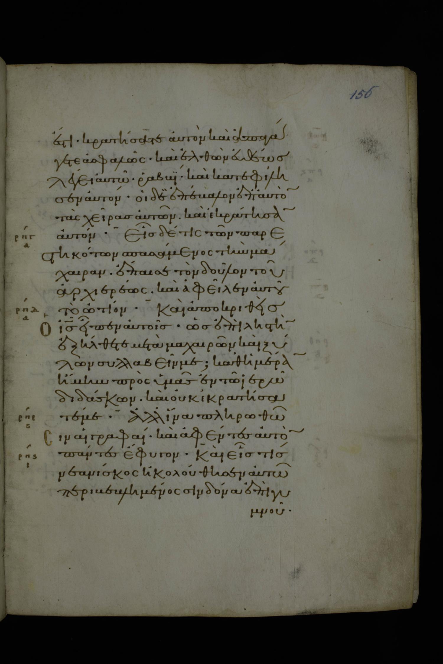 Eleventh century minuscule of Gospels on parchment; 370 leaves, 1 column, 20 lines per column. Images were taken at the National Library of Greece in Athens.