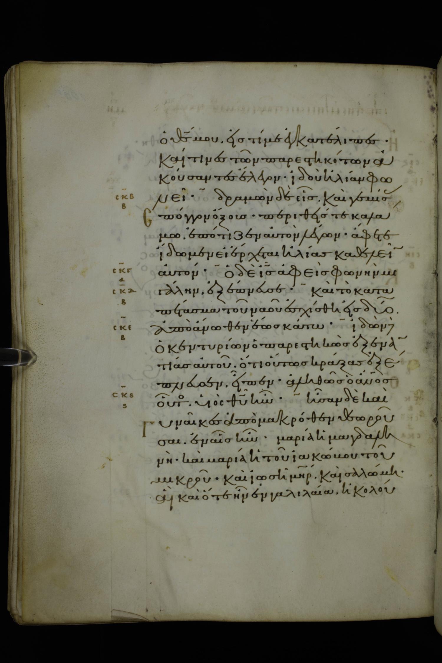 Eleventh century minuscule of Gospels on parchment; 370 leaves, 1 column, 20 lines per column. Images were taken at the National Library of Greece in Athens.