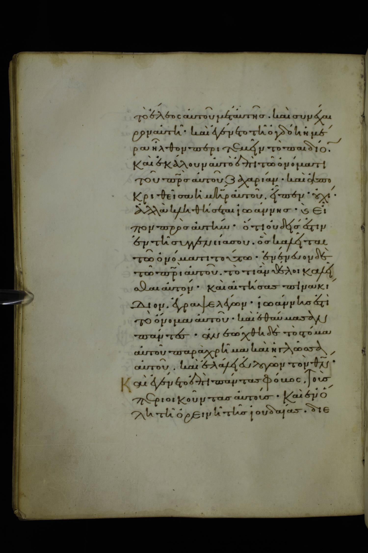 Eleventh century minuscule of Gospels on parchment; 370 leaves, 1 column, 20 lines per column. Images were taken at the National Library of Greece in Athens.