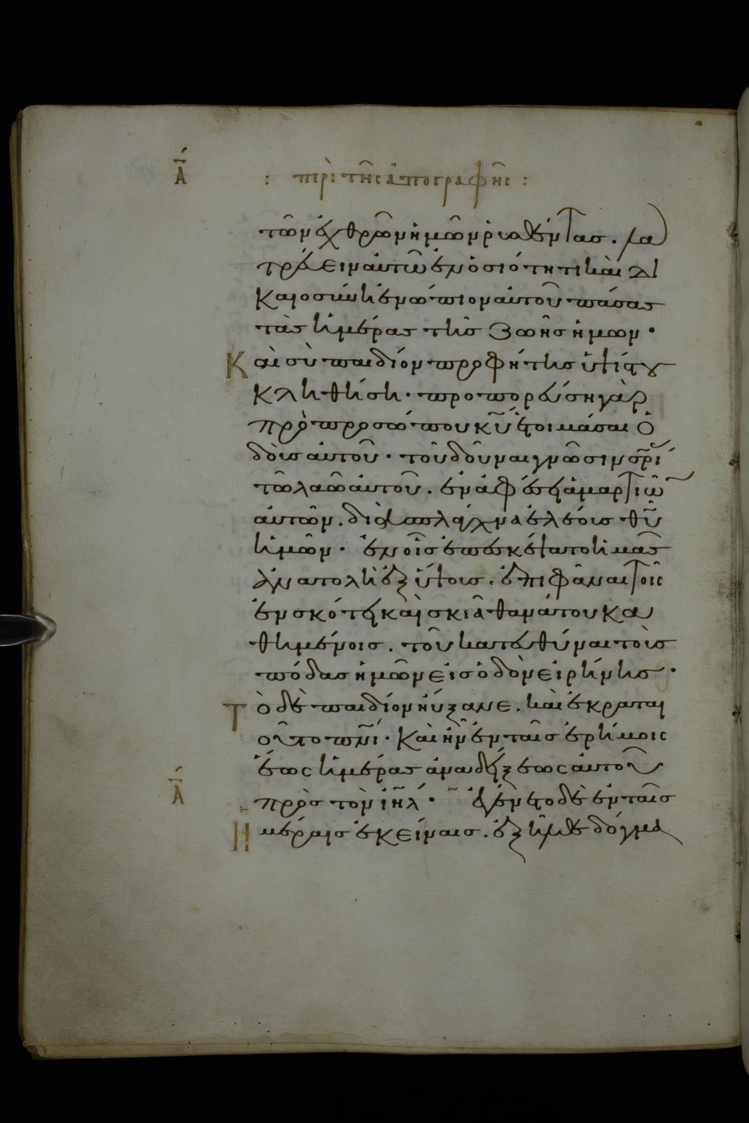Eleventh century minuscule of Gospels on parchment; 370 leaves, 1 column, 20 lines per column. Images were taken at the National Library of Greece in Athens.