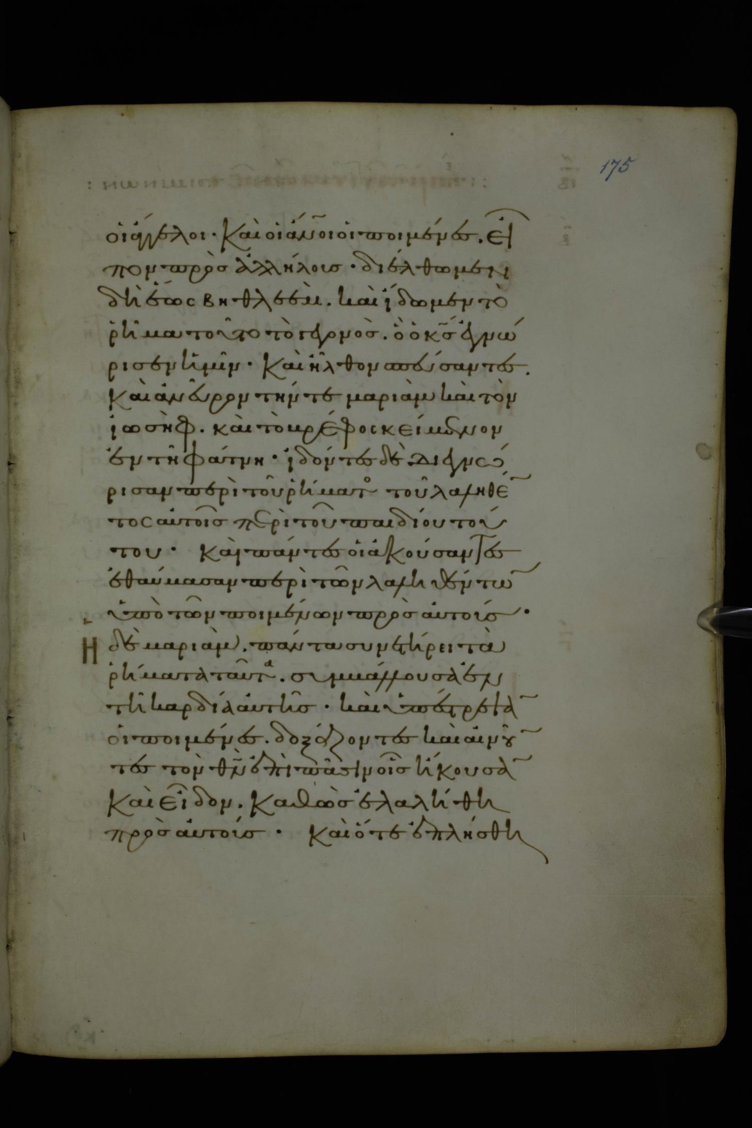 Eleventh century minuscule of Gospels on parchment; 370 leaves, 1 column, 20 lines per column. Images were taken at the National Library of Greece in Athens.