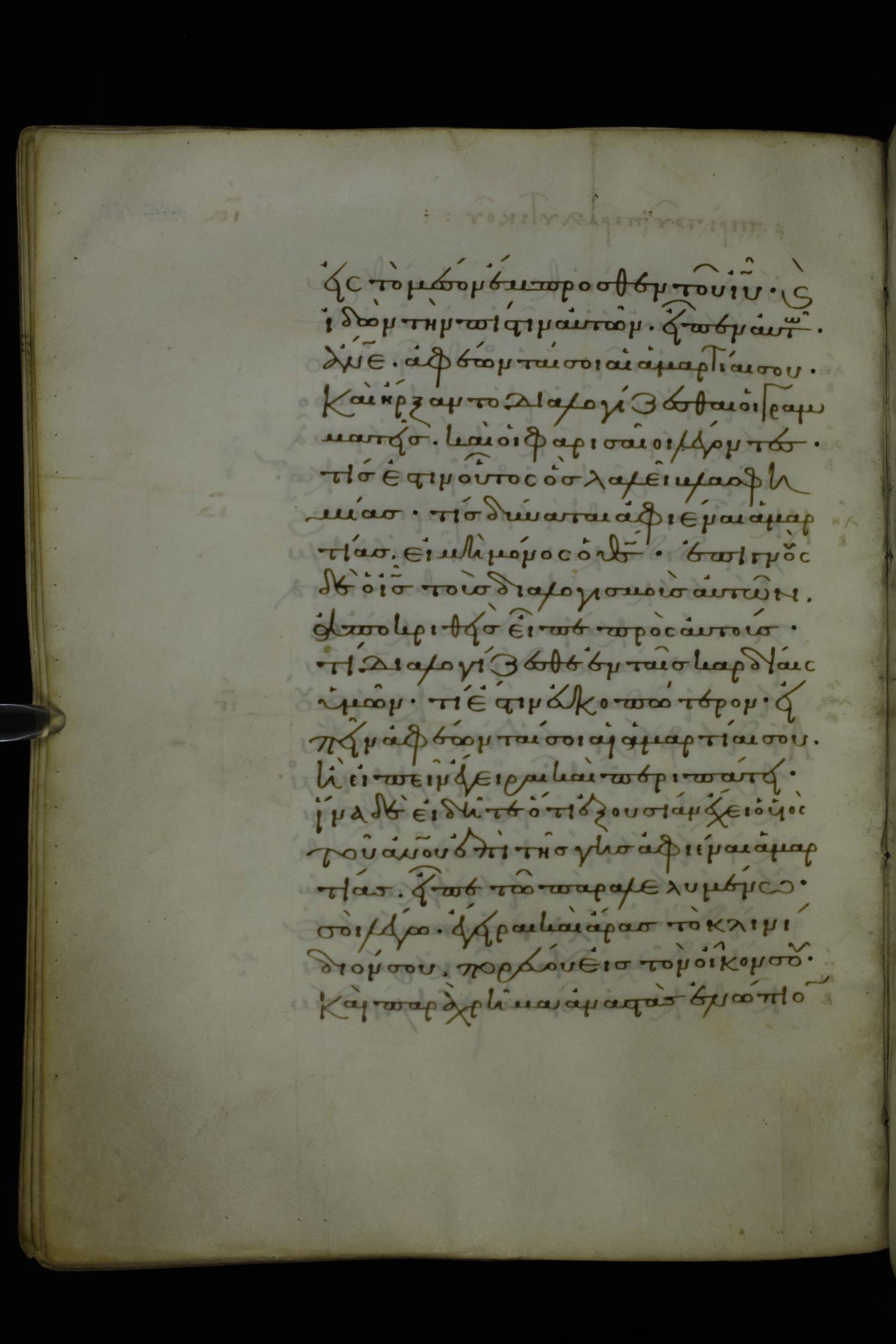 Eleventh century minuscule of Gospels on parchment; 370 leaves, 1 column, 20 lines per column. Images were taken at the National Library of Greece in Athens.