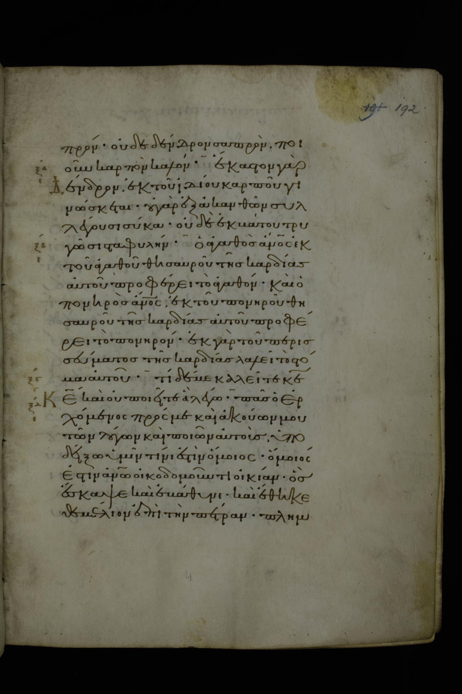 Eleventh century minuscule of Gospels on parchment; 370 leaves, 1 column, 20 lines per column. Images were taken at the National Library of Greece in Athens.