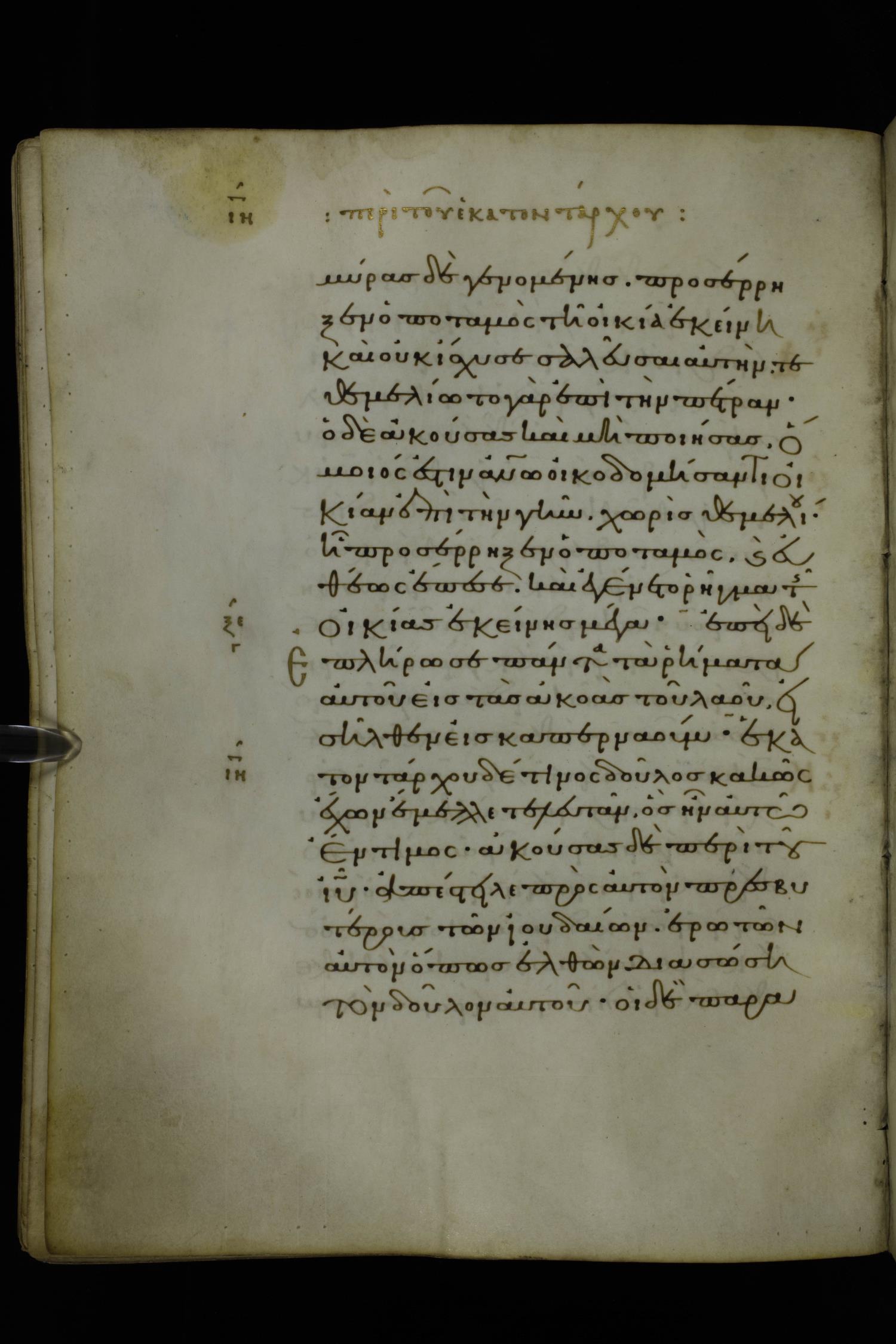Eleventh century minuscule of Gospels on parchment; 370 leaves, 1 column, 20 lines per column. Images were taken at the National Library of Greece in Athens.