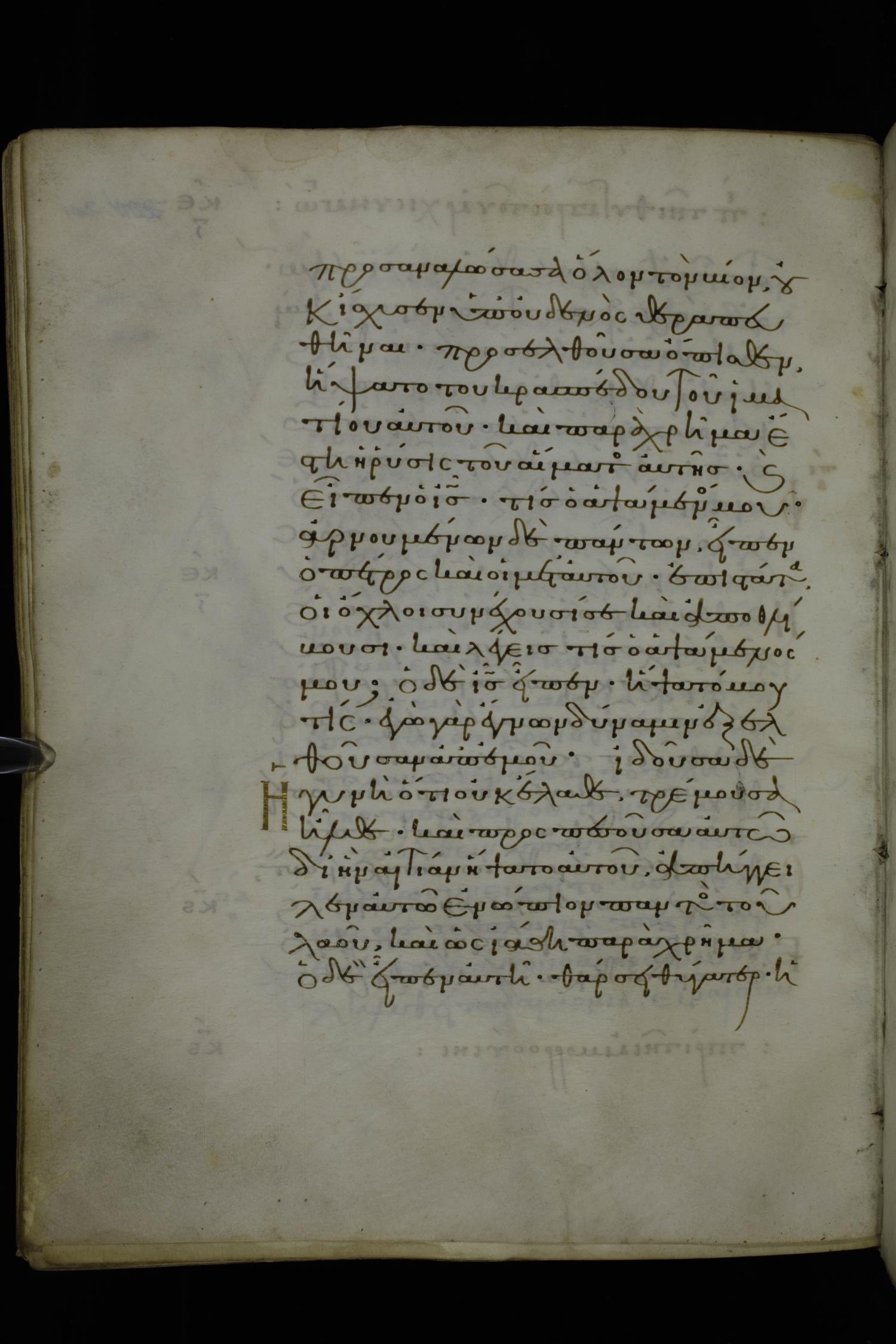 Eleventh century minuscule of Gospels on parchment; 370 leaves, 1 column, 20 lines per column. Images were taken at the National Library of Greece in Athens.