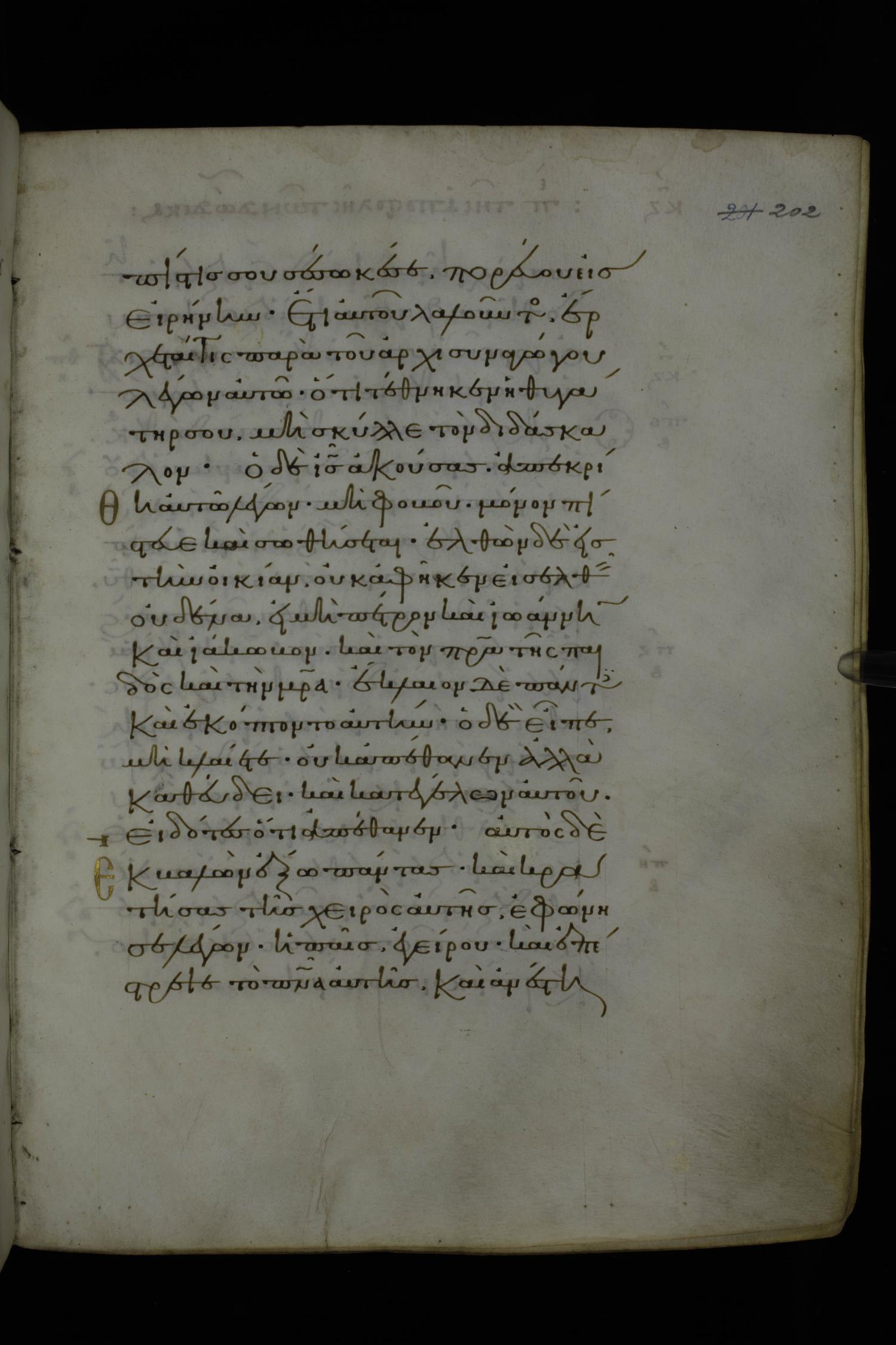 Eleventh century minuscule of Gospels on parchment; 370 leaves, 1 column, 20 lines per column. Images were taken at the National Library of Greece in Athens.
