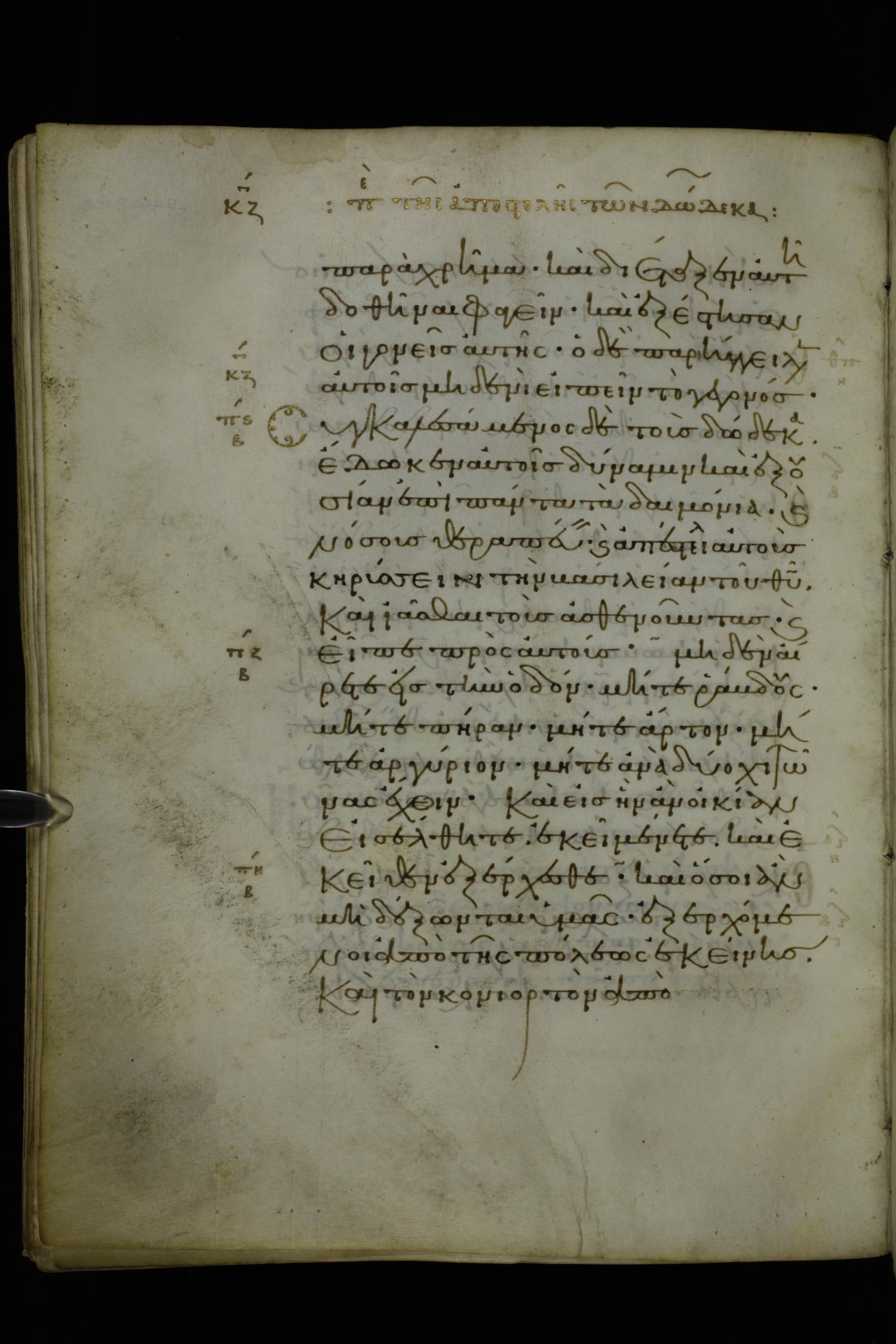 Eleventh century minuscule of Gospels on parchment; 370 leaves, 1 column, 20 lines per column. Images were taken at the National Library of Greece in Athens.