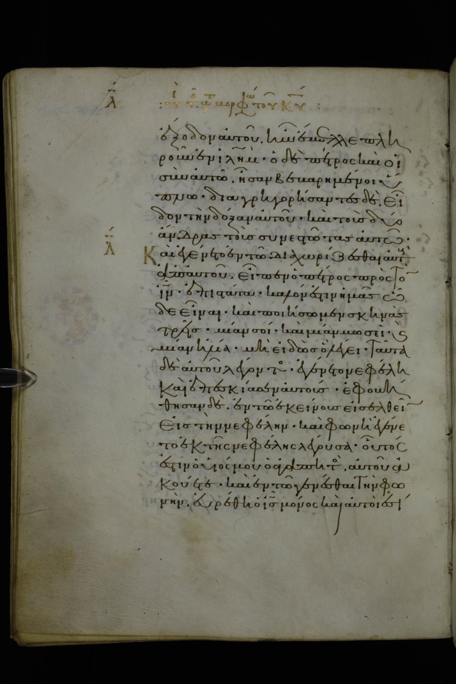Eleventh century minuscule of Gospels on parchment; 370 leaves, 1 column, 20 lines per column. Images were taken at the National Library of Greece in Athens.