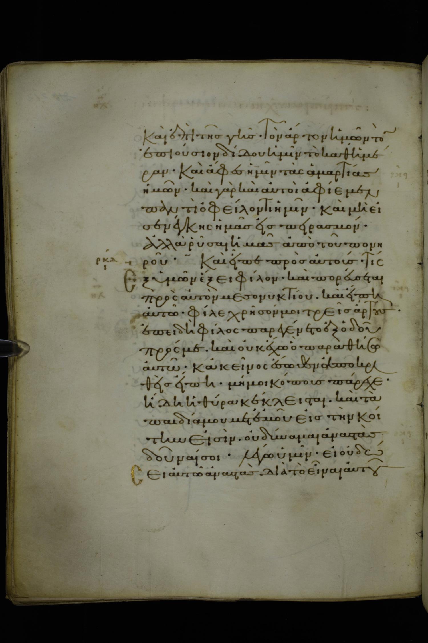 Eleventh century minuscule of Gospels on parchment; 370 leaves, 1 column, 20 lines per column. Images were taken at the National Library of Greece in Athens.