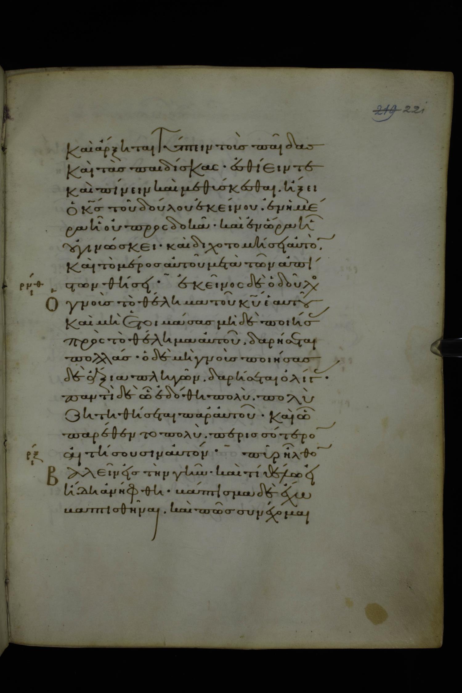 Eleventh century minuscule of Gospels on parchment; 370 leaves, 1 column, 20 lines per column. Images were taken at the National Library of Greece in Athens.