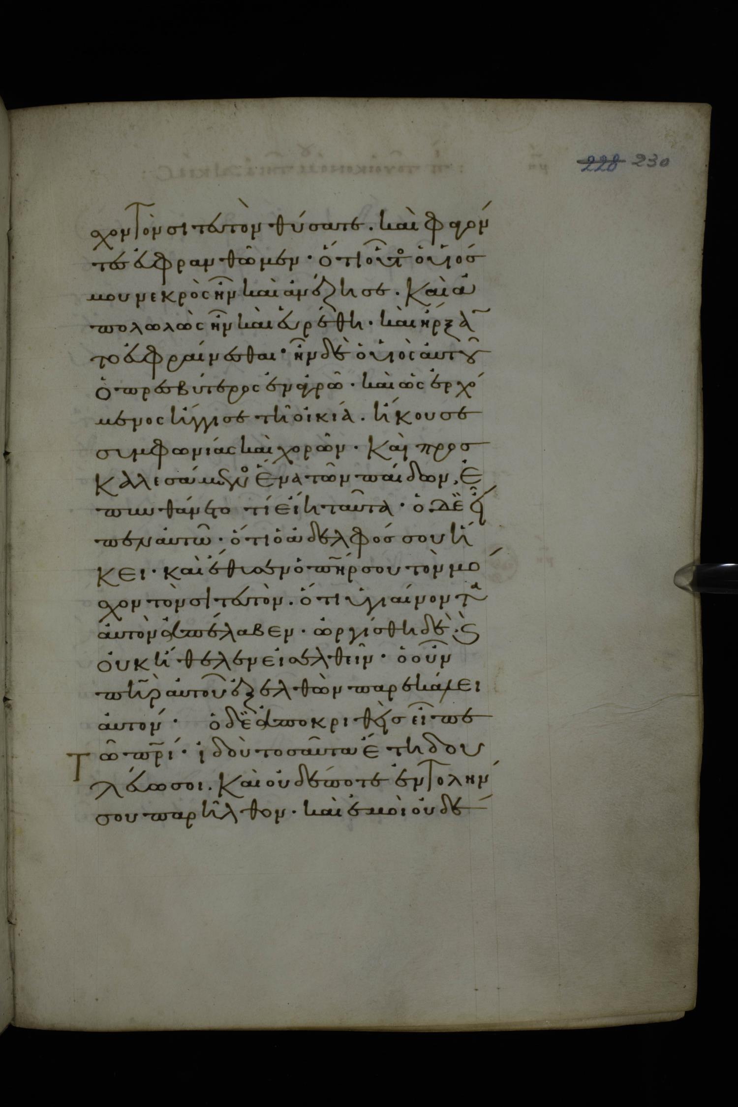 Eleventh century minuscule of Gospels on parchment; 370 leaves, 1 column, 20 lines per column. Images were taken at the National Library of Greece in Athens.