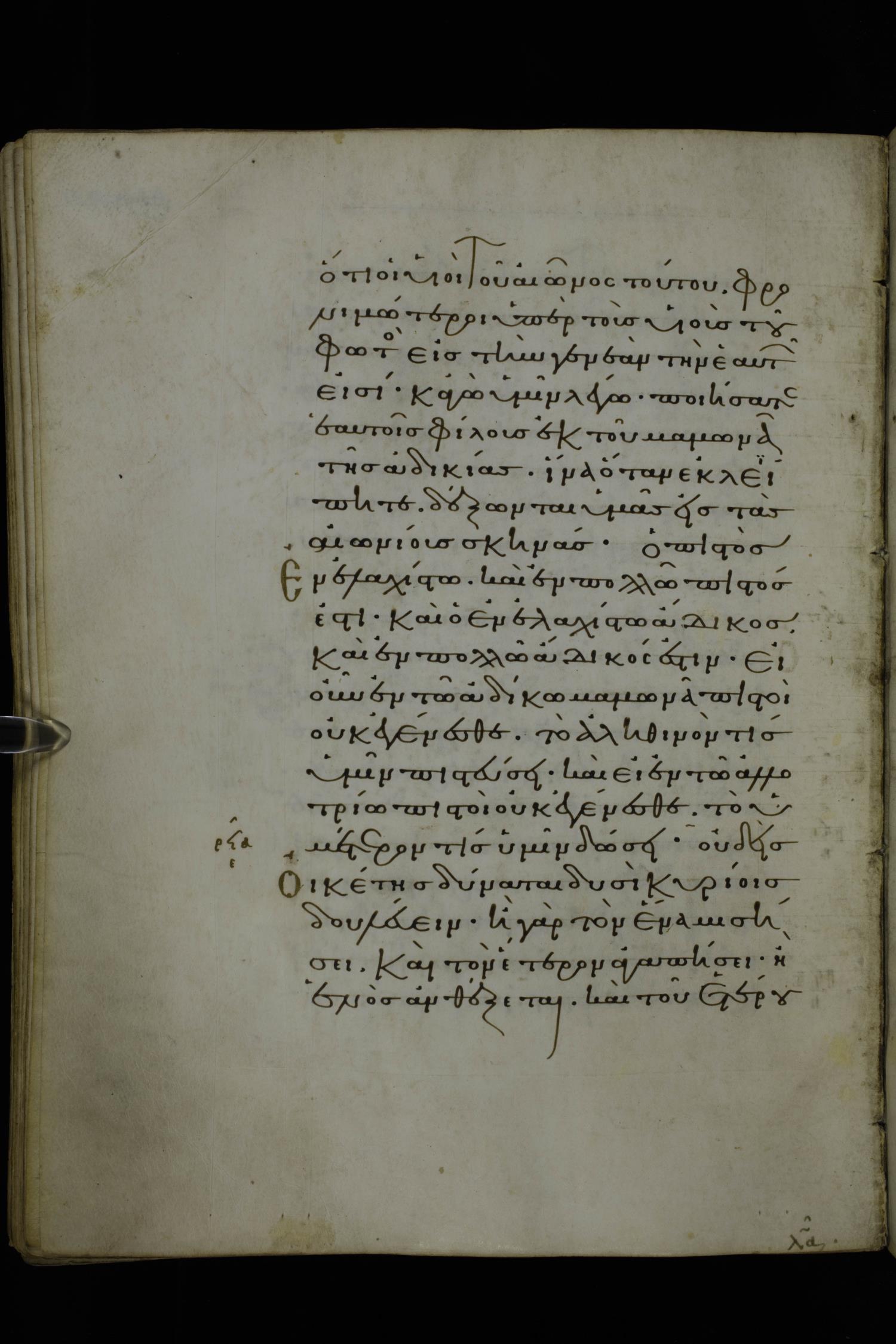 Eleventh century minuscule of Gospels on parchment; 370 leaves, 1 column, 20 lines per column. Images were taken at the National Library of Greece in Athens.