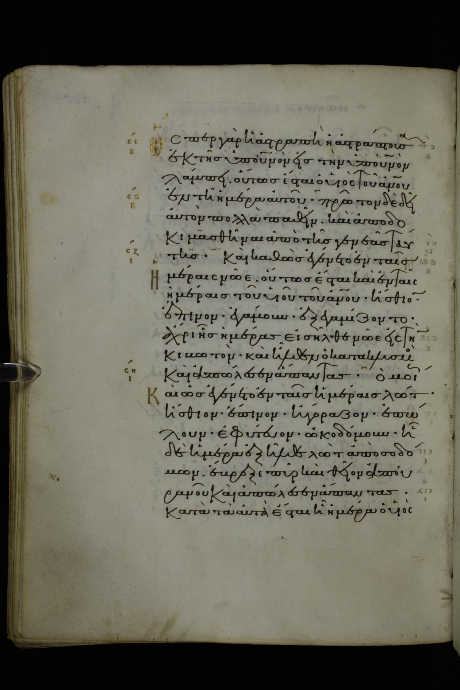 Eleventh century minuscule of Gospels on parchment; 370 leaves, 1 column, 20 lines per column. Images were taken at the National Library of Greece in Athens.