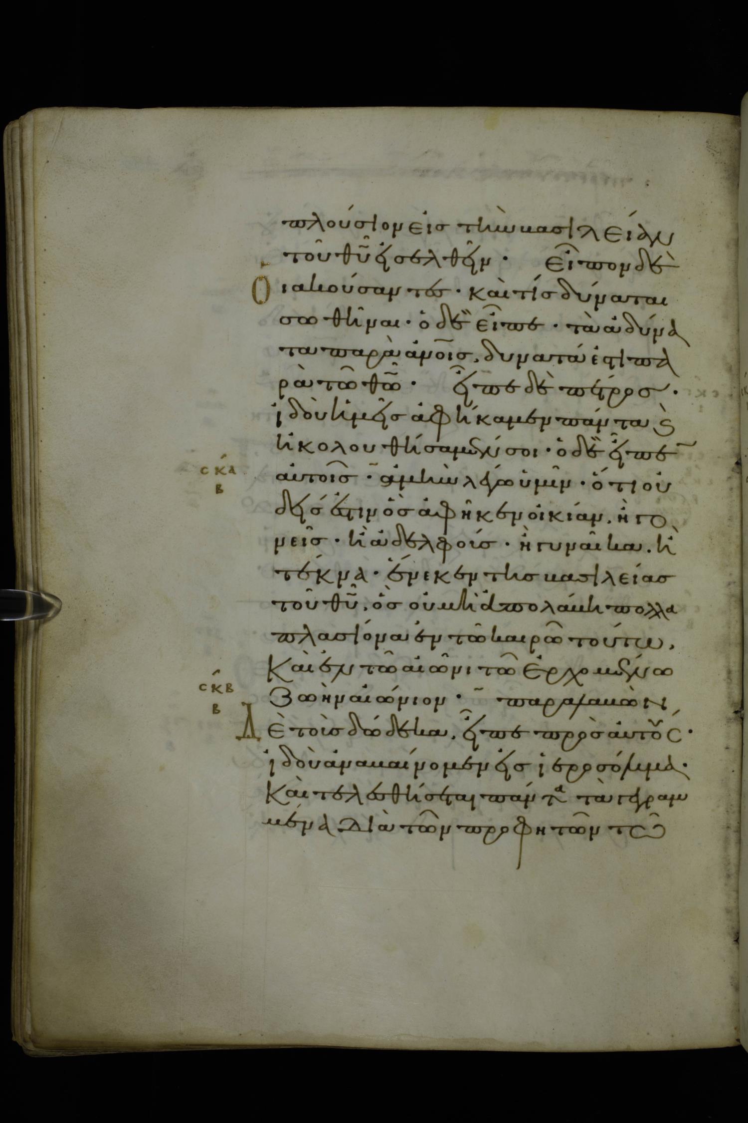 Eleventh century minuscule of Gospels on parchment; 370 leaves, 1 column, 20 lines per column. Images were taken at the National Library of Greece in Athens.