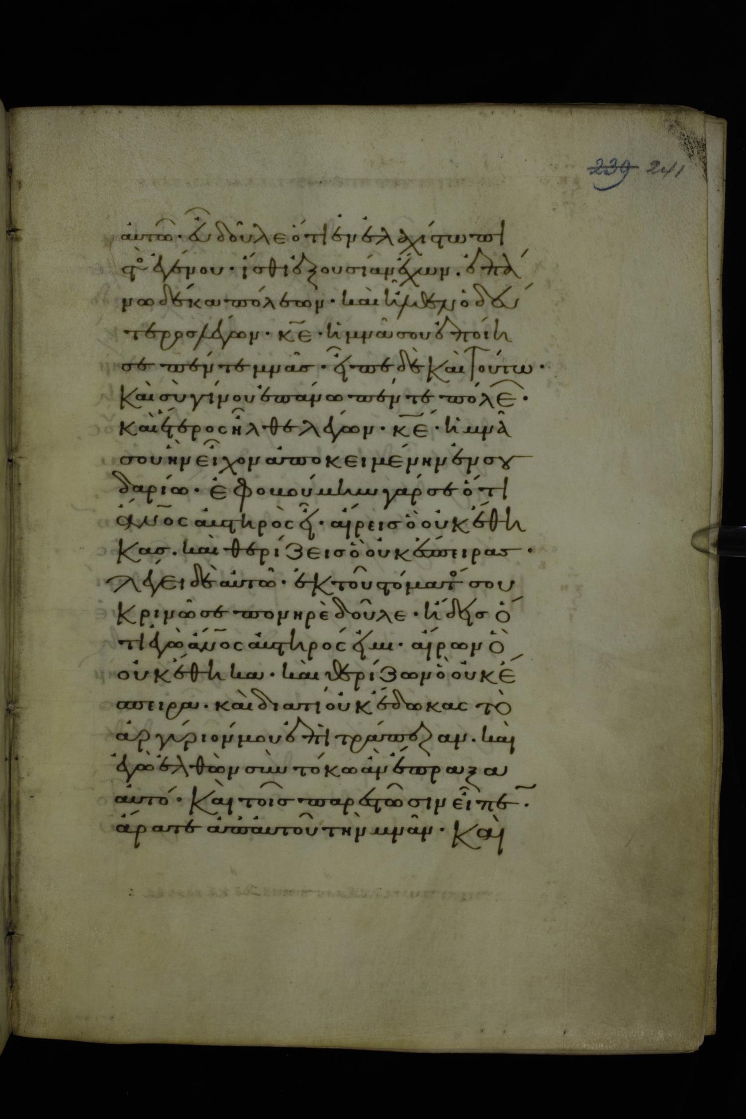 Eleventh century minuscule of Gospels on parchment; 370 leaves, 1 column, 20 lines per column. Images were taken at the National Library of Greece in Athens.