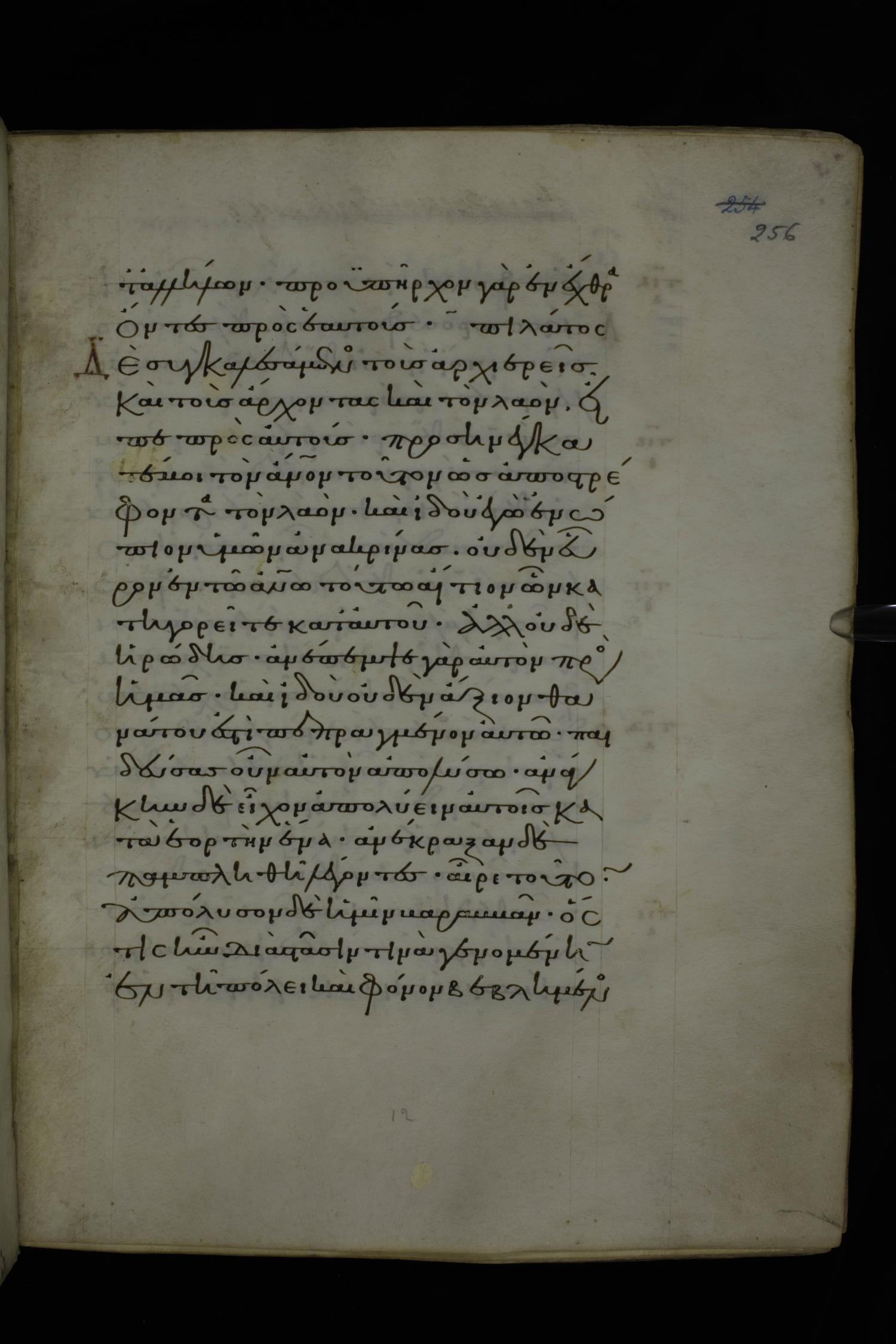 Eleventh century minuscule of Gospels on parchment; 370 leaves, 1 column, 20 lines per column. Images were taken at the National Library of Greece in Athens.