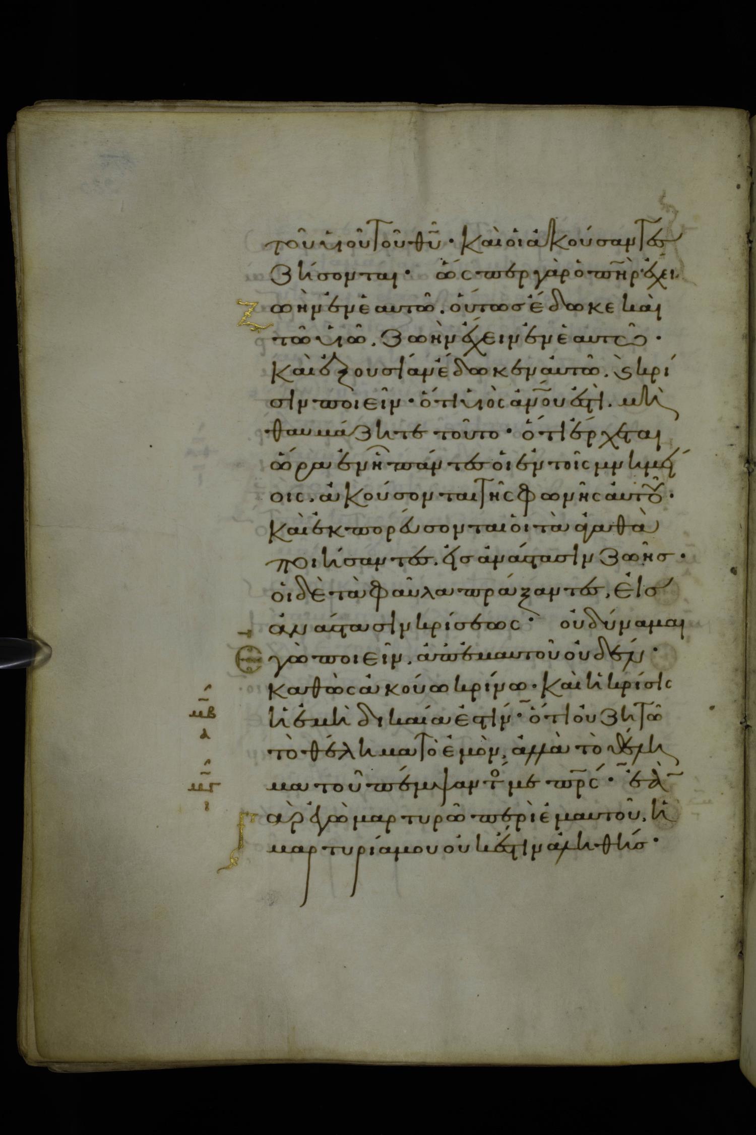 Eleventh century minuscule of Gospels on parchment; 370 leaves, 1 column, 20 lines per column. Images were taken at the National Library of Greece in Athens.