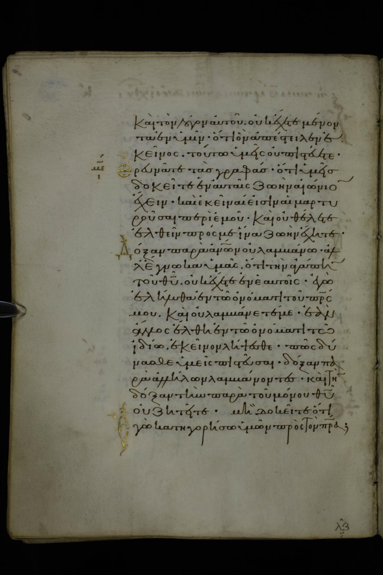 Eleventh century minuscule of Gospels on parchment; 370 leaves, 1 column, 20 lines per column. Images were taken at the National Library of Greece in Athens.