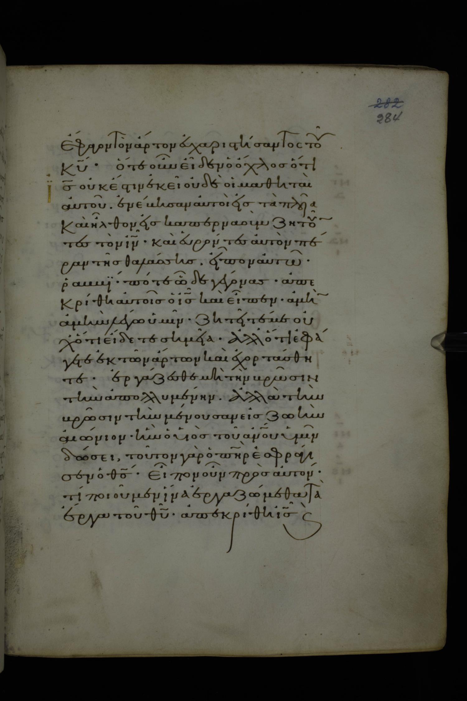 Eleventh century minuscule of Gospels on parchment; 370 leaves, 1 column, 20 lines per column. Images were taken at the National Library of Greece in Athens.