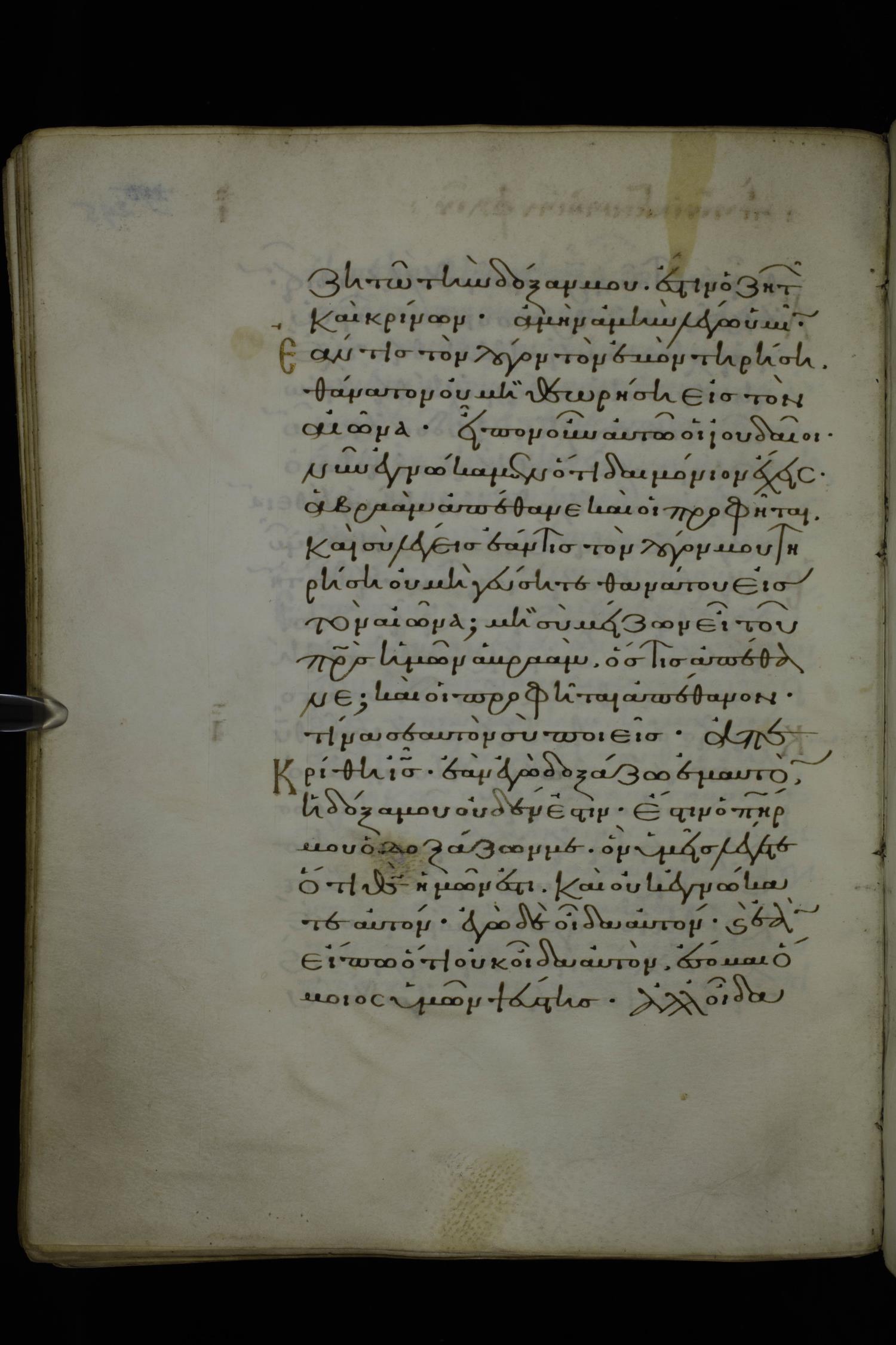 Eleventh century minuscule of Gospels on parchment; 370 leaves, 1 column, 20 lines per column. Images were taken at the National Library of Greece in Athens.