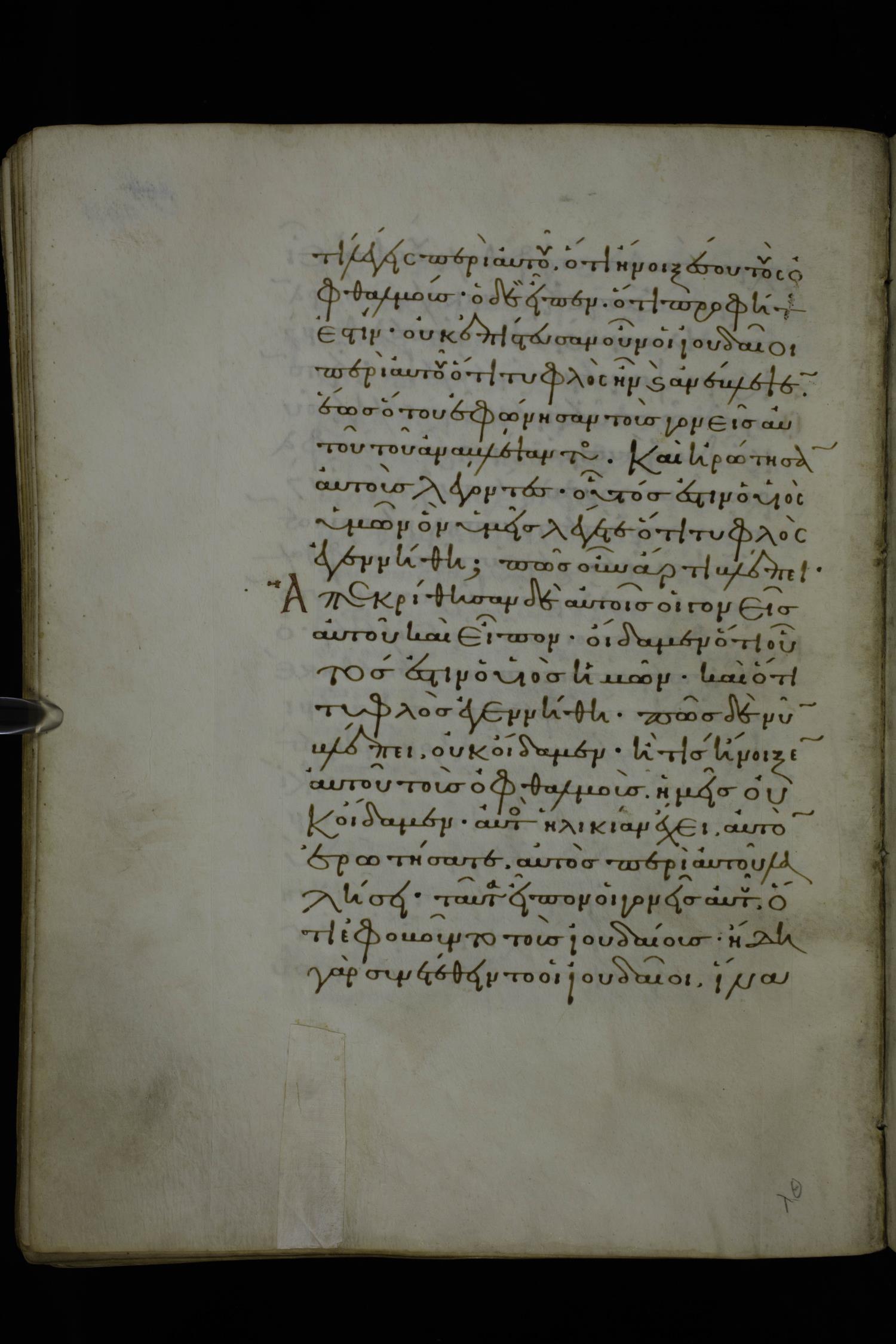 πῶς δὲ νῦν βλέπει οὐκ οἴδαμεν, ἢ τίς ἤνοιξεν αὐτοῦ τοὺς ὀφθαλμοὺς ἡμεῖς οὐκ οἴδαμεν· αὐτὸν ἐρωτήσατε, ἡλικίαν ἔχει, αὐτὸς περὶ ἑαυτοῦ λαλήσει.
